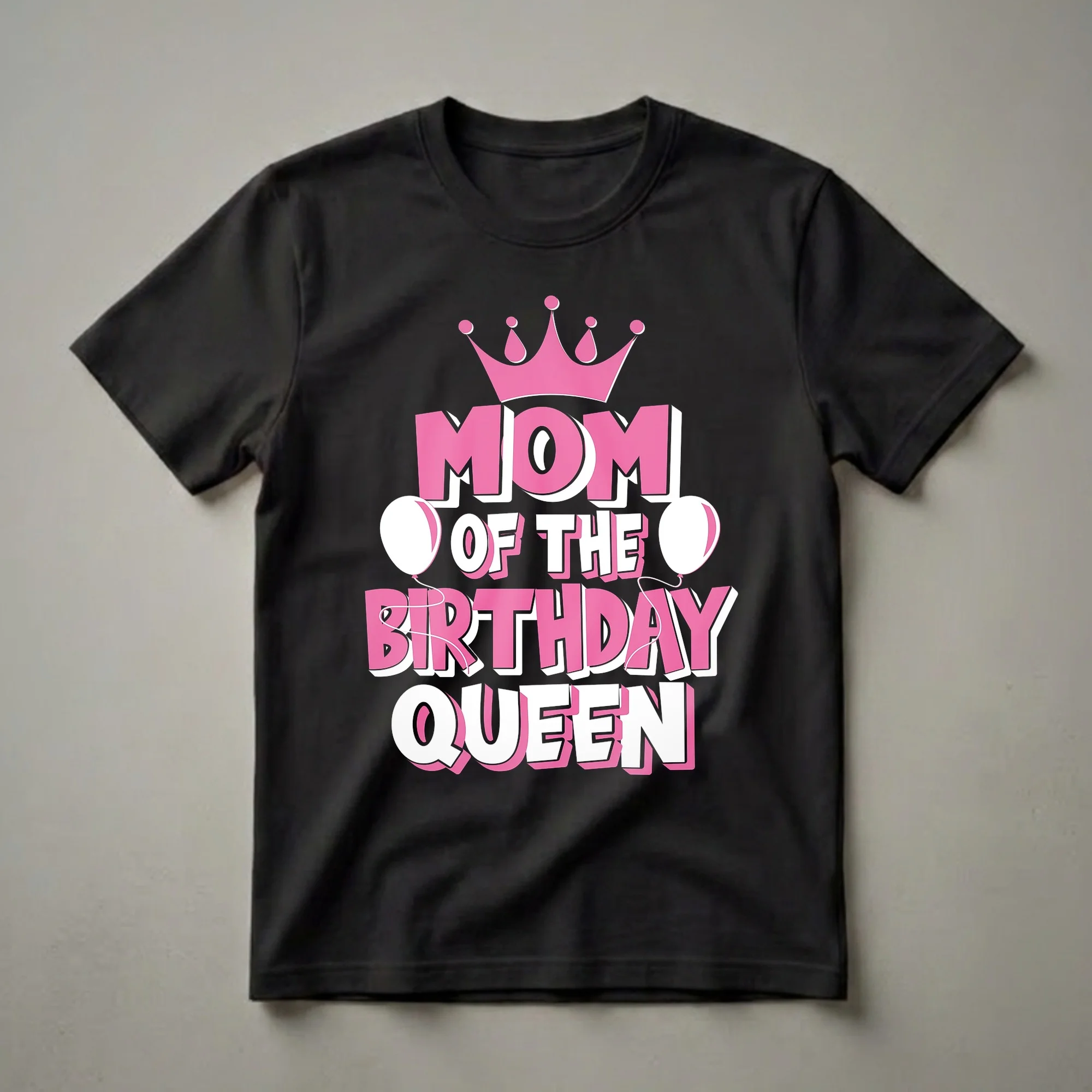 - Mom Of The Birthday Queen t-shirt for mothers celebrating their daughter's birthday.