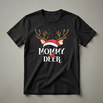 - A festive Mommy Deer t-shirt for mothers coordinating holiday outfits.