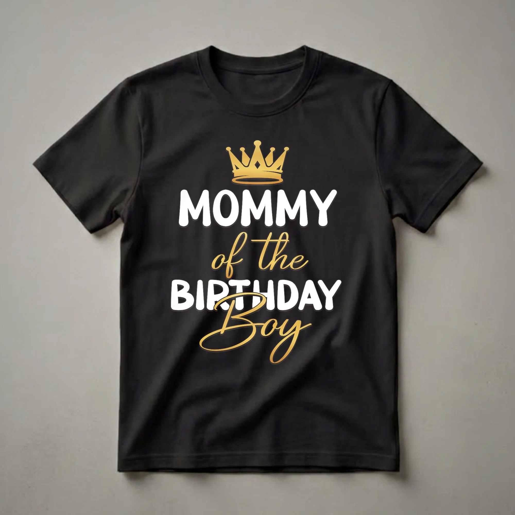 - This 'Mommy Of The Birthday Boy' t-shirt is a regal choice for birthday celebrations.