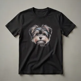 Share your Morkie love with this artistic portrait, showcasing the charming face of your favorite Maltese-Yorkshire Terrier mix with exquisite detail. This eye-catching t-shirt features a beautifully rendered artistic drawing of a Morkie's face, capturing the breed's distinctive features with intricate detail and a blend of warm and cool tones. The artwork stands out against the solid black background, making it a true statement piece for any dog enthusiast. Morkies, a cross between a Maltese and a Yorkshire Terrier, are known for their playful personalities and loyalty, often forming strong bonds with their families. This shirt is a wonderful way for any Morkie mom or dad to express their devotion to their furry friend. It makes a thoughtful gift for birthdays, holidays, or just because for the Morkie lover in your life. Wear this unique graphic tee to dog parks, casual outings, or while relaxing at home with your beloved pet.