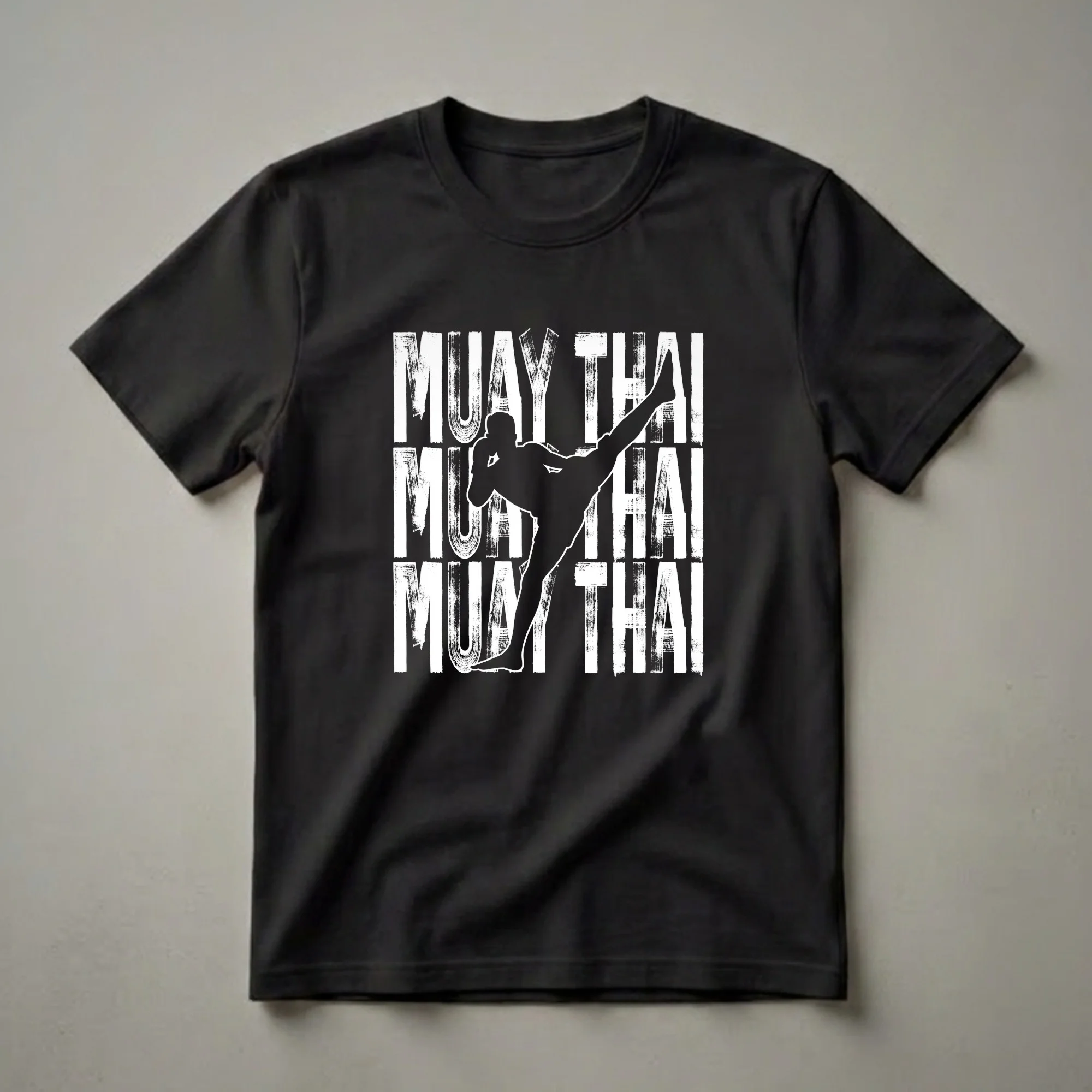 - Bold graphic design with distressed 'MUAY THAI' lettering.