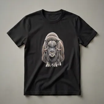 Wildlife enthusiasts and lovers of the Arctic wilderness will appreciate this detailed drawing of a musk ox. The artwork captures the animal's imposing presence, showcasing its thick, shaggy coat, curved horns, and powerful build. This striking graphic tee features a realistic depiction, rendered with fine detail that highlights the texture of its fur and the contours of its face. Musk oxen are known for their incredible adaptations to harsh, cold environments, thriving in the Arctic tundra of North America and Greenland. Their ability to survive extreme temperatures is a testament to their resilience. This shirt is a thoughtful gift for anyone who admires these magnificent creatures or enjoys the rugged beauty of polar regions. It's a go-to tee for nature walks, hiking trips, or simply relaxing while showcasing your passion for wildlife. Wear this unique piece of apparel to express your connection to the natural world and its most fascinating inhabitants. The detailed illustration makes this t-shirt a standout item for any collection.