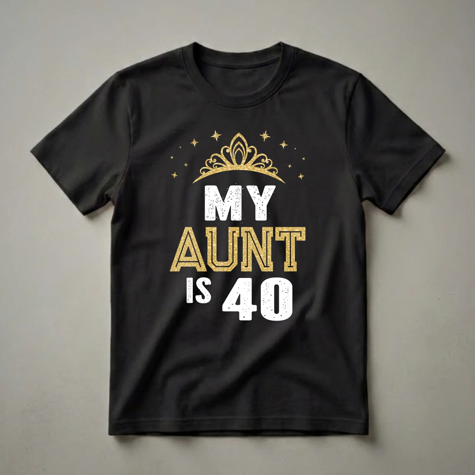 - "My Aunt is 40" graphic tee for a 40th birthday celebration.
