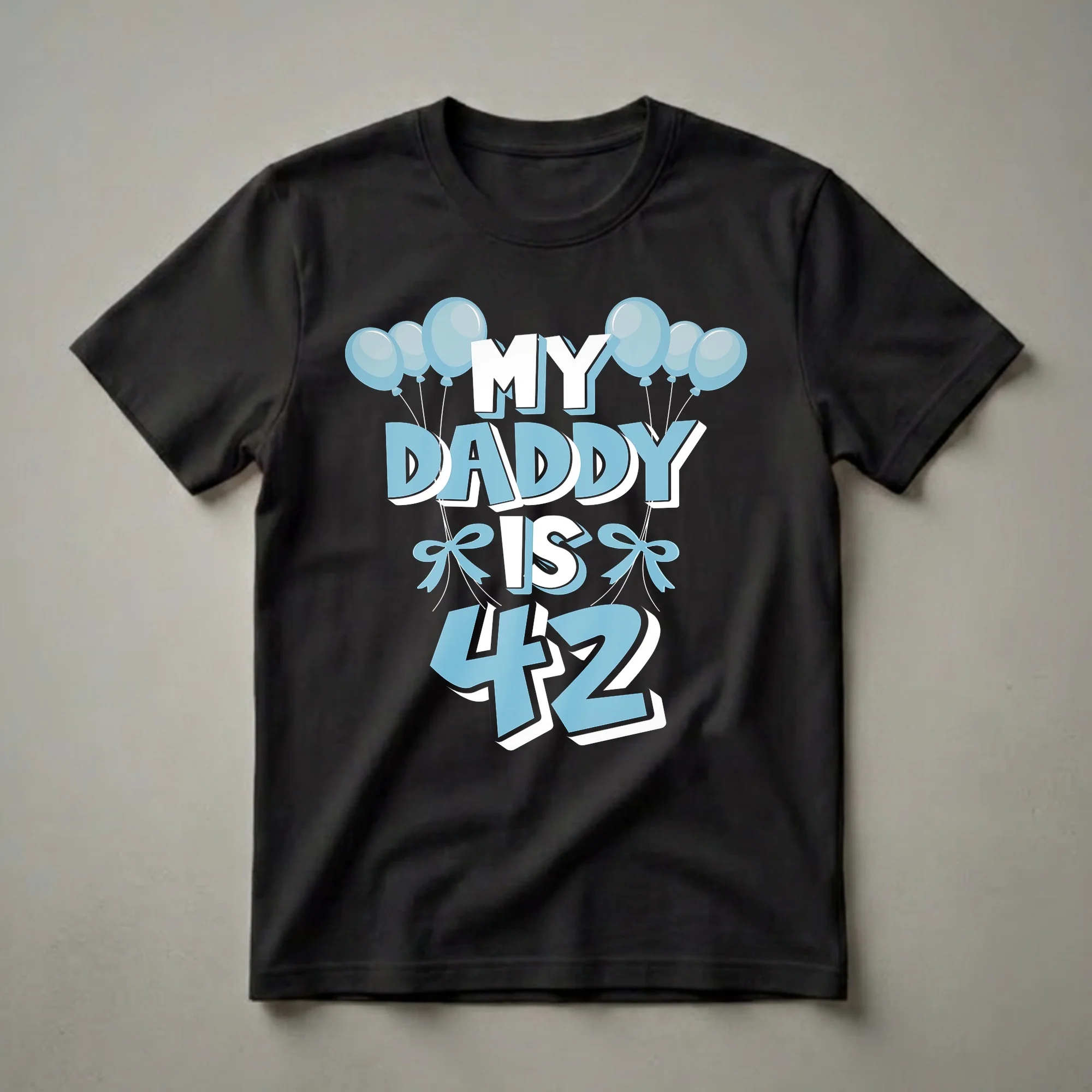 - "My Daddy Is 42" graphic tee for a father's 42nd birthday.