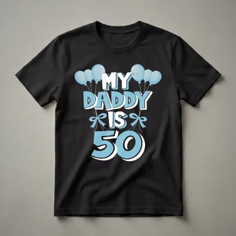 Fathers turning 50 deserve a special celebration, and this graphic t-shirt is a fantastic way to mark the occasion. The design prominently displays "MY DADDY IS 50" in large, eye-catching lettering, accented by light blue balloons and decorative bows, all set against a black background. This shirt is a thoughtful gift for any dad hitting this significant milestone, whether it's for a birthday party, a family gathering, or just a casual day out. Fifty years is a major life event, often marking a transition into a new chapter, and this tee proudly announces his arrival. It's a fun way for him to wear his birthday pride and share the joy with loved ones. This shirt works well for dads who appreciate a bit of humor and a clear statement on their special day. It makes a thoughtful gift from children, spouses, or friends who want to celebrate his 50th birthday in style. Imagine him wearing this to his birthday dinner or brunch, bringing smiles to everyone around him.