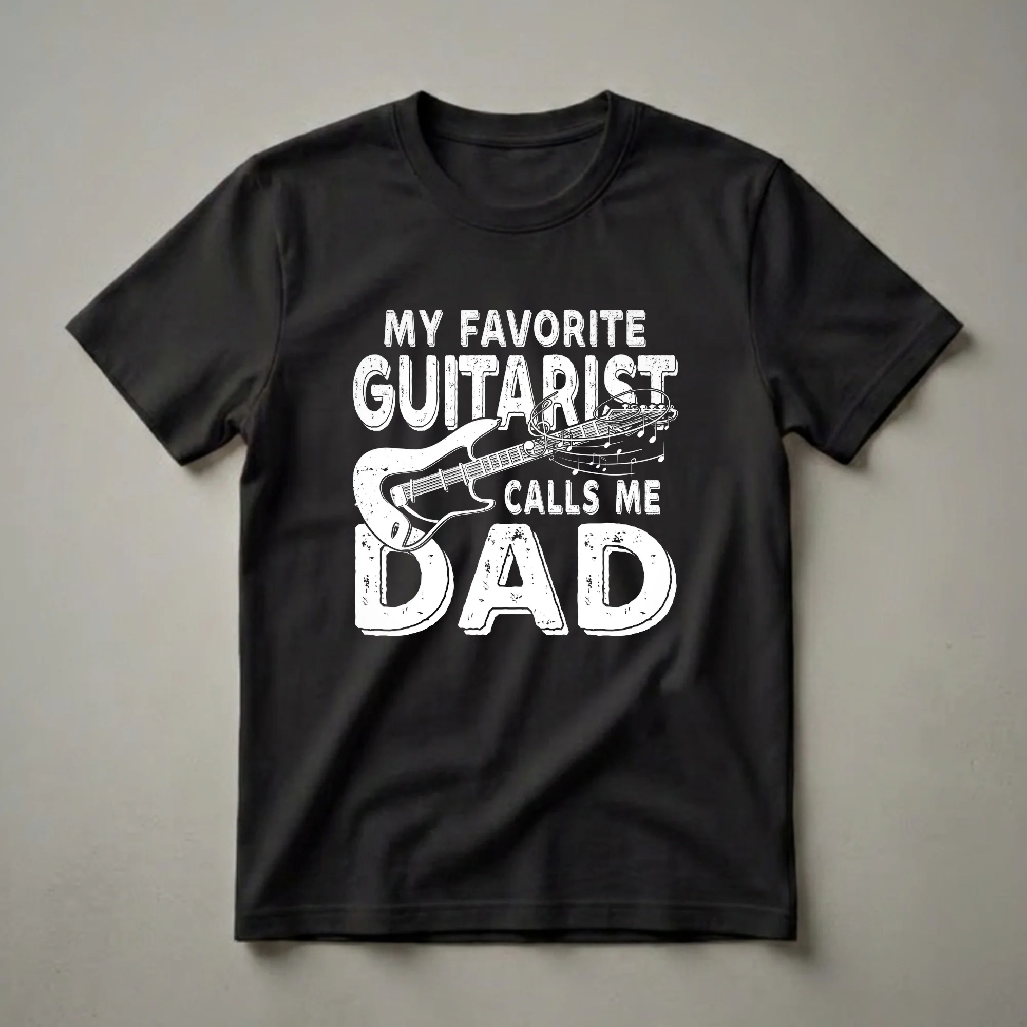 - Bold, distressed white lettering proudly declares "MY FAVORITE GUITARIST CALLS ME DAD."
