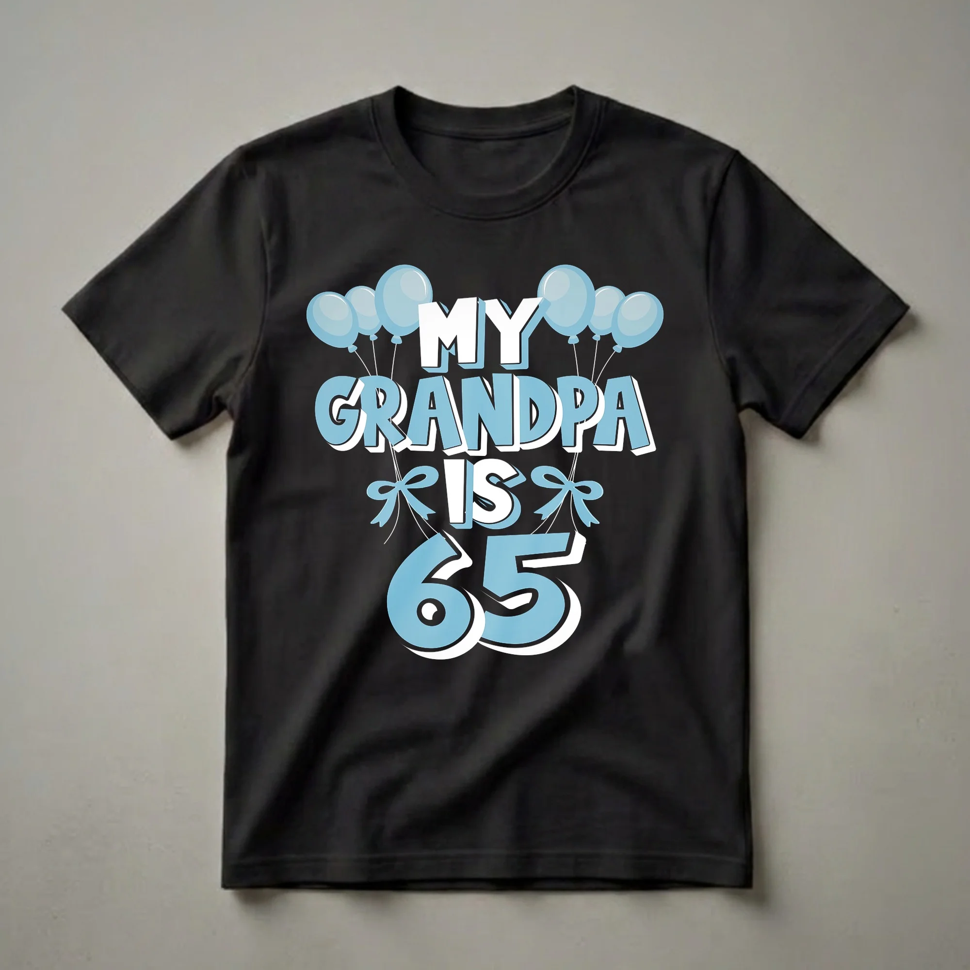 - "MY GRANDPA IS 65" graphic tee for a 65th birthday celebration.
