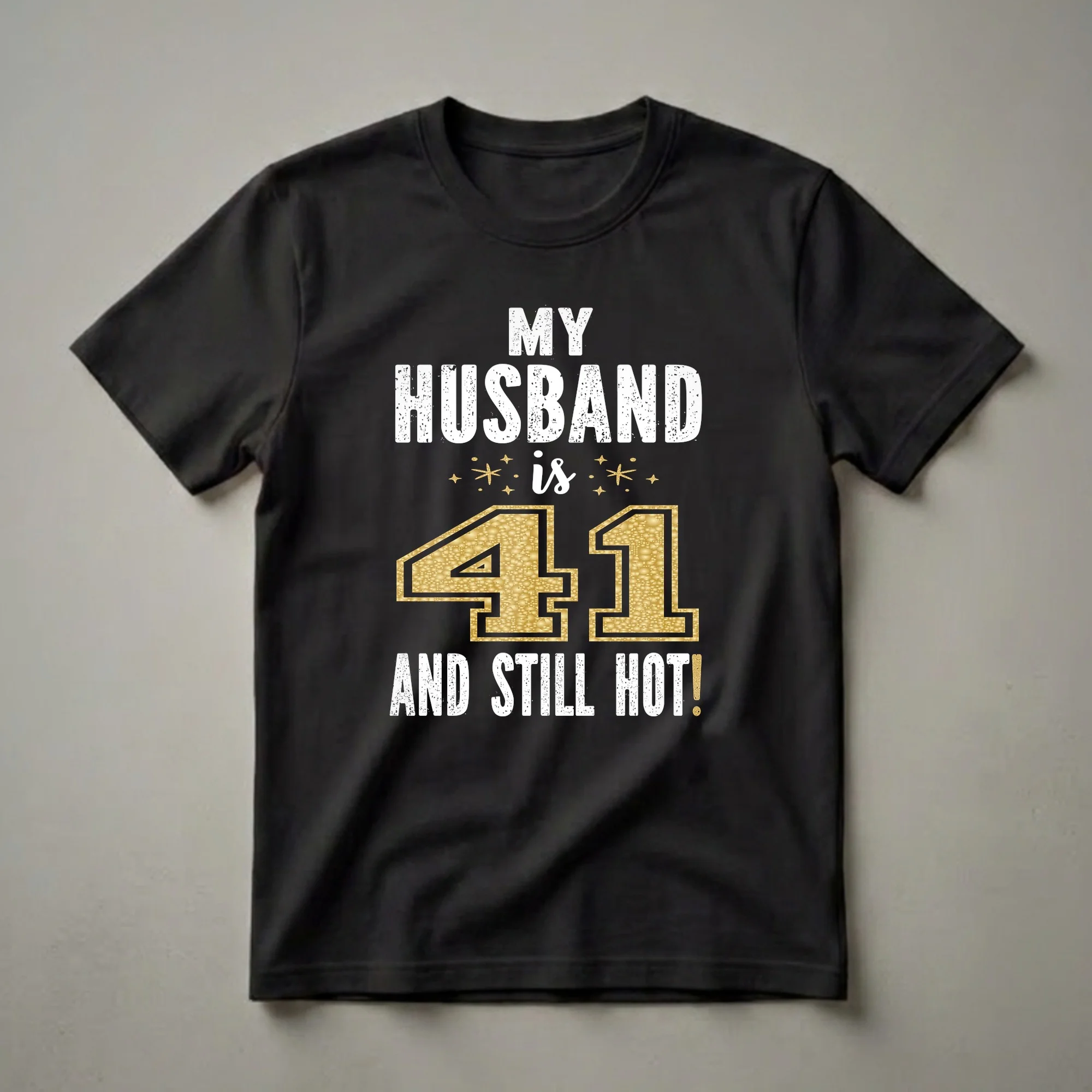 - Celebrate your husband hitting 41 with this bold '41 and Still Hot' graphic tee.