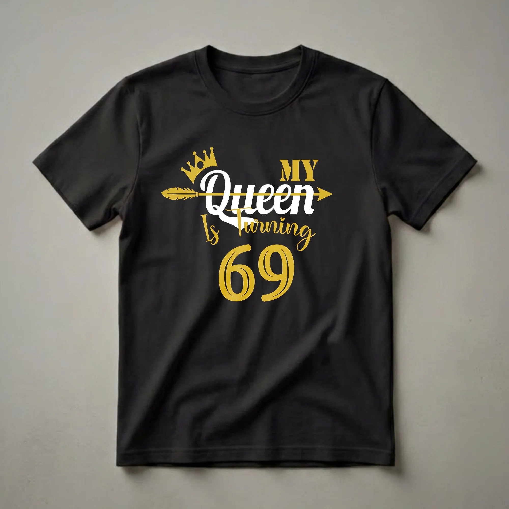 - This 'My Queen Is Turning 69' tee features a regal gold crown, celebrating her special milestone.