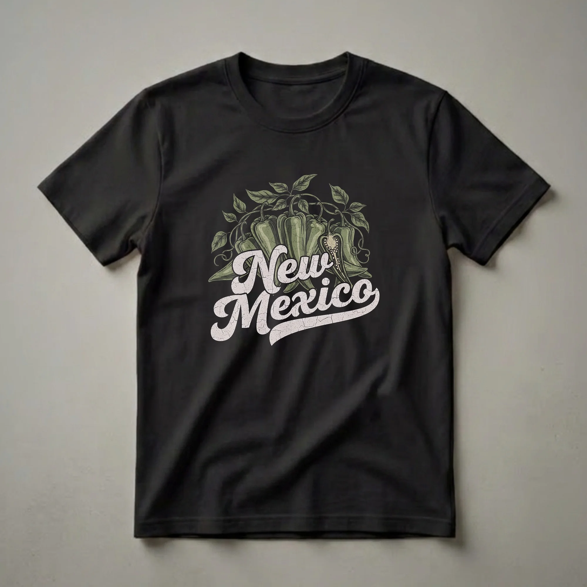 - A vibrant graphic tee celebrating New Mexico's culinary icon, the green chili pepper.