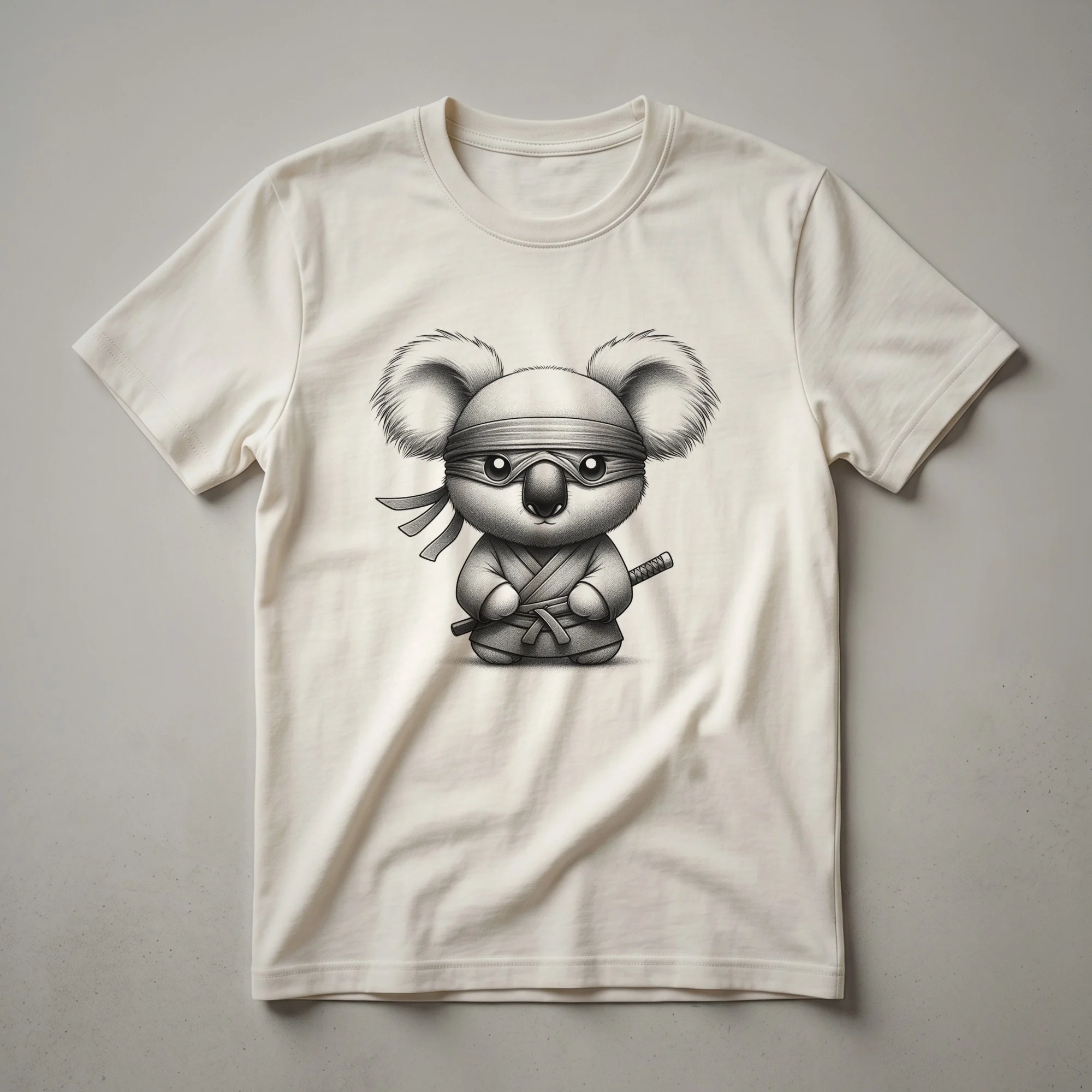 Kids who dream of mastering martial arts will love this striking graphic tee. The design showcases a playful koala, depicted as a skilled ninja, complete with nunchucks ready for action. Koalas, native to Australia, are known for their arboreal lifestyle, spending most of their time in eucalyptus trees. This t-shirt brings a touch of the wild and the discipline of the dojo together. It's a fantastic shirt for any child who admires the stealth and agility of ninjas or has a fascination with unique woodland creatures. This tee works well for everyday wear, playdates, or as a thoughtful gift for a child's birthday. Imagine your child reaching for this comfortable shirt when they want to feel adventurous and strong. It’s a unique way for them to express their interests, blending the charm of a koala with the excitement of ninja training. This eye-catching t-shirt is sure to become a favorite in their wardrobe, sparking conversations and smiles wherever they go.