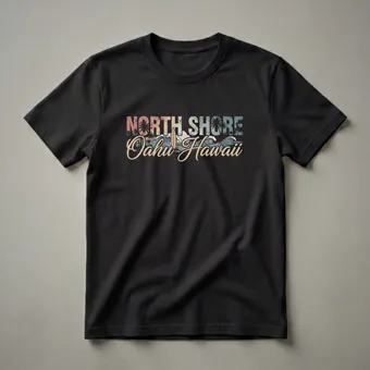Surfers and beach lovers who dream of riding the legendary waves of Oahu's North Shore will reach for this graphic tee. The design captures the iconic surf spot with a vintage aesthetic, featuring bold, cracked lettering that reads "North Shore Oahu Hawaii." Below the text, stylized palm trees and a classic surfboard stand against a backdrop of crashing waves, evoking the spirit of Hawaiian surf culture. The North Shore of Oahu is world-renowned for its powerful winter swells, attracting professional surfers and spectators alike. This shirt is a thoughtful gift for anyone who has experienced the magic of Hawaii or dreams of visiting its famous beaches. Wear it to your next beach outing, casual gathering, or while reminiscing about island adventures. This comfortable tee is a staple for any wardrobe celebrating the Aloha State.