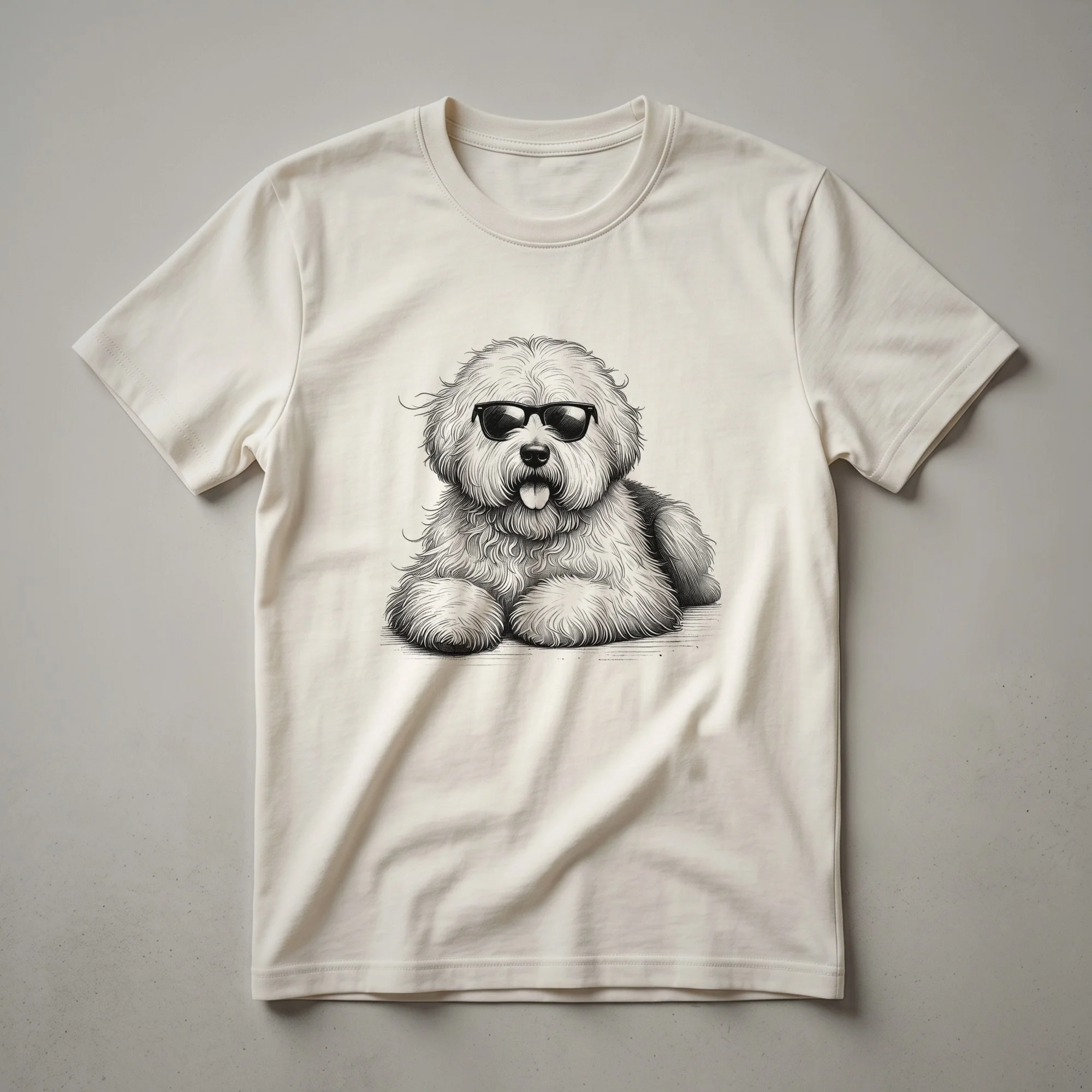 Kids who love fluffy pups will adore this graphic t-shirt featuring a cool Old English Sheepdog rocking a pair of shades.This graphic tee showcases a playful take on the breed, featuring an Old English Sheepdog sporting a pair of stylish sunglasses. The design is rendered in a bold, graphic style, making it stand out on this comfortable t-shirt. This apparel is a fantastic choice for children who adore dogs, especially those with a soft spot for the fluffy charm of the Old English Sheepdog. It's a great way for kids to express their love for animals and add a touch of fun to their wardrobe. This shirt works well for everyday wear, playdates, or as a thoughtful gift for a young dog enthusiast. The Old English Sheepdog, originating from England, was historically used as a cattle drover, known for its intelligence and calm demeanor. This shirt captures a fun, modern vibe for any kid who loves this unique breed. It's a staple in any young dog lover's collection.
