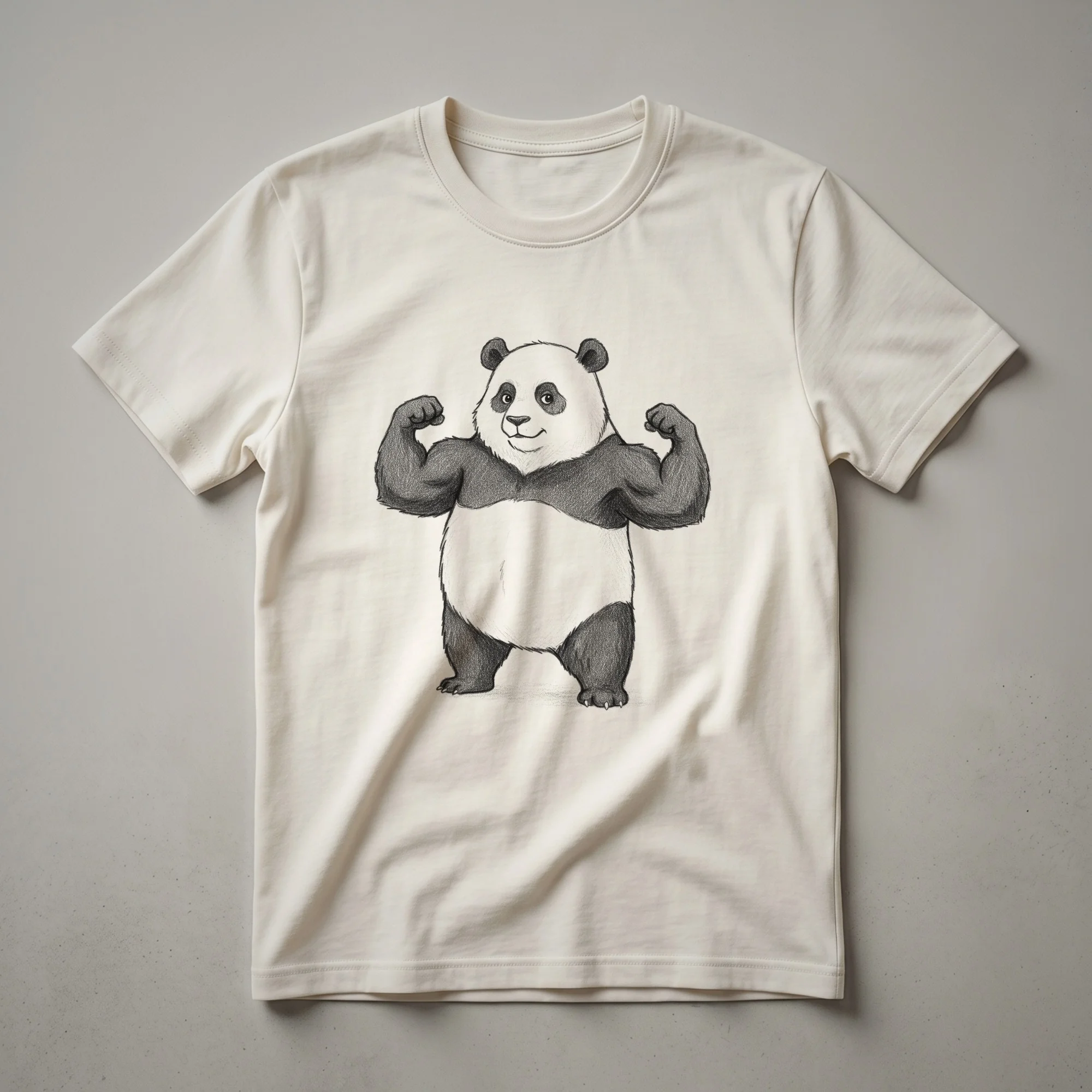 Gym-goers who appreciate a bit of humor will reach for this striking graphic t-shirt. The design features a cartoon panda, known for its distinctive black and white markings, in a powerful pose, flexing its biceps with impressive definition. This visual representation of strength and determination is set against a clean background, making the panda the undeniable focal point. Pandas, native to the bamboo forests of China, are often perceived as gentle giants, making this image a playful juxtaposition of their cuddly image with a serious workout aesthetic. This tee works well for anyone dedicated to their fitness journey, whether they are focusing on weightlifting, cardio, or general conditioning. It’s a thoughtful gift for the fitness lover in your life who enjoys a good laugh and a strong workout. Wear it to your next gym session, a casual outing with friends, or even while relaxing at home after a tough training day. This shirt is a fun way to express your commitment to fitness with a touch of personality.