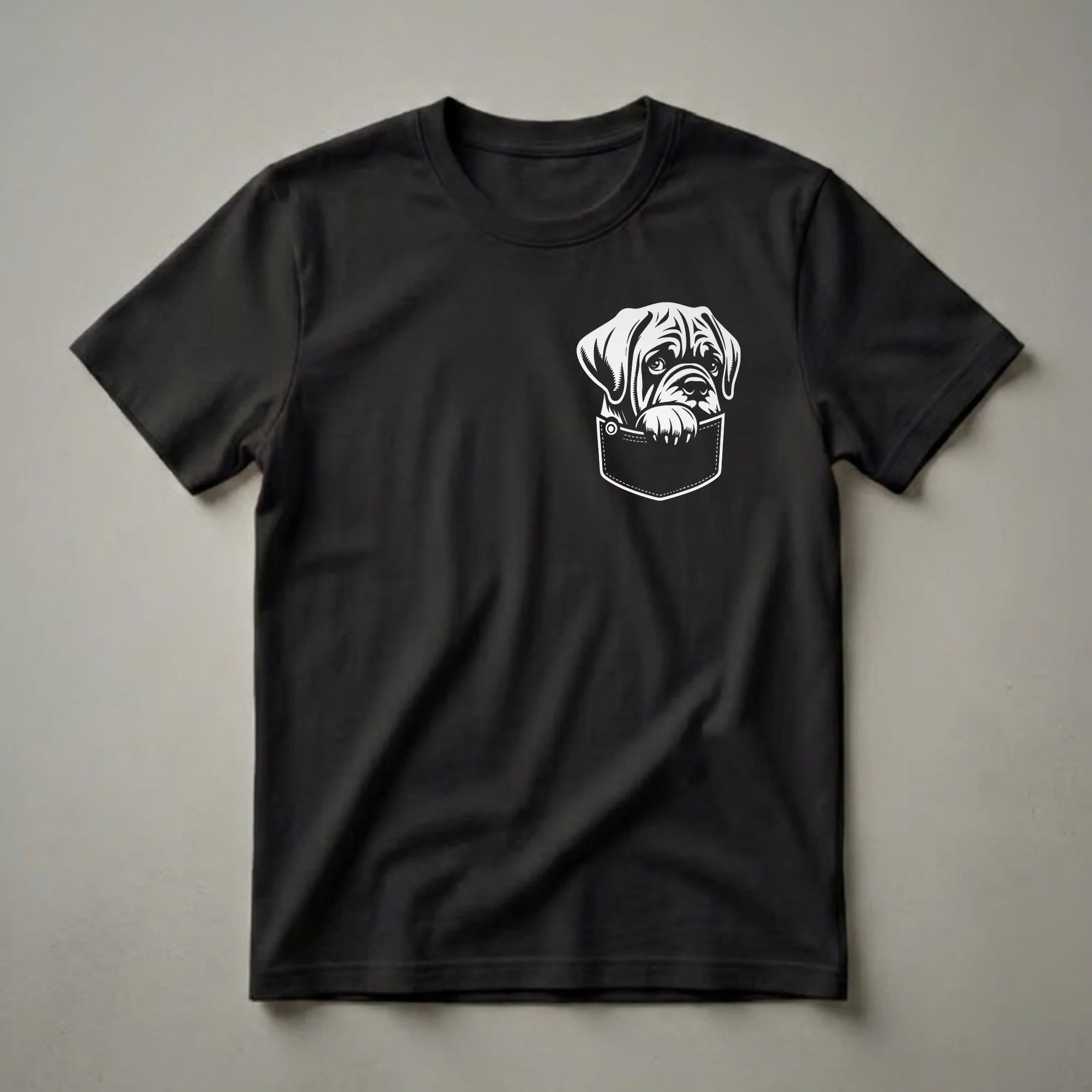 Dog lovers will adore this adorable graphic tee showcasing a playful English Mastiff peeking out from a cleverly designed faux pocket. This graphic tee features a striking white illustration of an English Mastiff's head and paw peeking out from a faux pocket. The detailed linework captures the breed's characteristic wrinkled brow and soulful eyes, making it instantly recognizable to any admirer. English Mastiffs, known for their calm demeanor and loyalty, are often referred to as gentle giants. This shirt is a fantastic way for any dog mom or dog dad to express their affection for this magnificent breed. It makes a thoughtful gift for birthdays, holidays, or just because. Wear this unique t-shirt to casual outings, dog park visits, or while relaxing at home with your furry companion. It's a go-to tee for any devoted English Mastiff enthusiast.