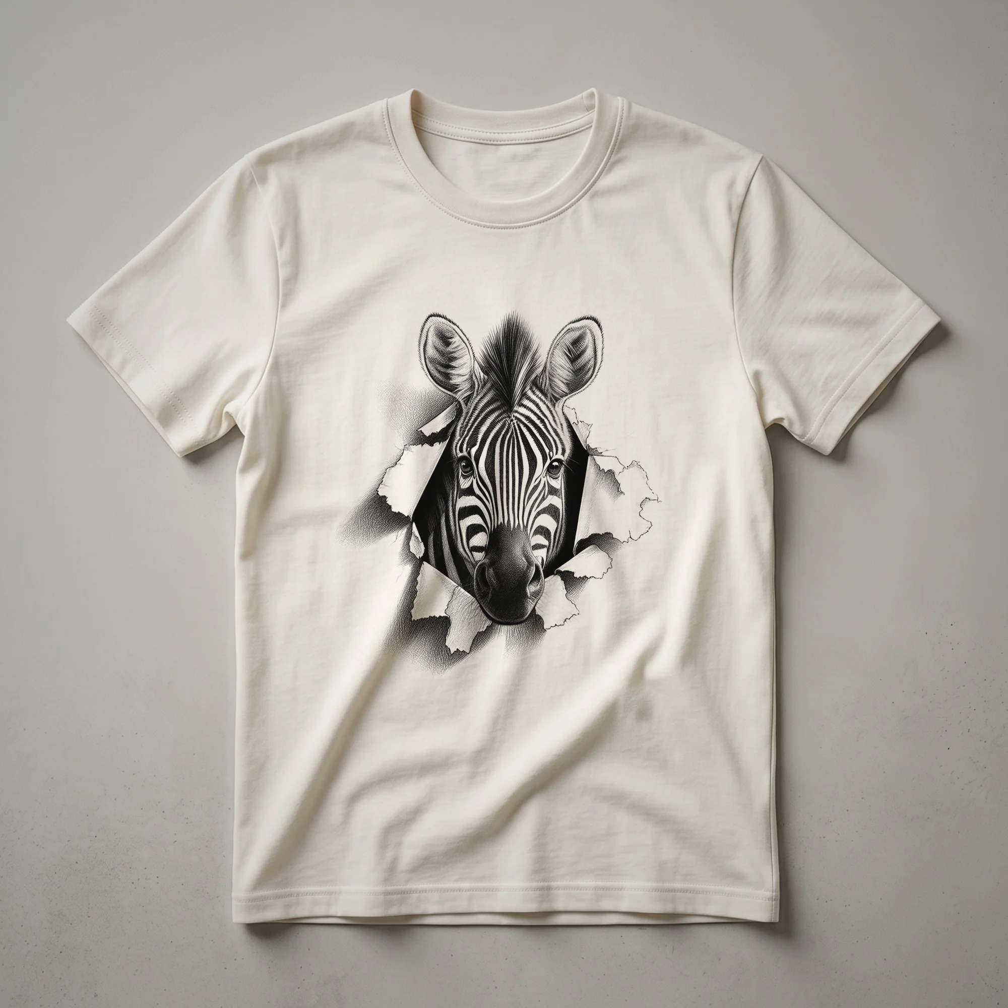 - A vintage-style graphic t-shirt for men and women featuring a peeking zebra design.