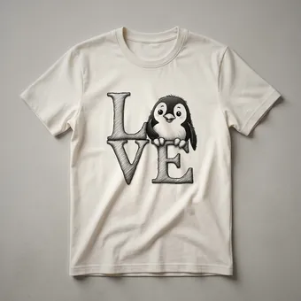 - This graphic tee features a charming penguin illustration with a heart motif, celebrating bird lovers.