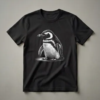 Wildlife enthusiasts who appreciate the unique beauty of penguins will reach for this striking graphic tee. The design features a detailed scratchboard illustration of a penguin, rendered in black and white with intricate linework that brings the texture of its feathers and skin to life. Penguins, flightless birds primarily found in the Southern Hemisphere, are known for their distinctive waddle and incredible swimming abilities. This shirt captures the essence of these fascinating creatures, making it a standout piece for anyone who loves nature and the animal kingdom. This t-shirt works well for casual outings, nature walks, or as a conversation starter among fellow bird lovers. It makes a thoughtful gift for the penguin aficionado in your life, offering a unique way to express their passion for these charming birds. Wear this unique penguin shirt to express your admiration for these resilient inhabitants of the cold southern seas.