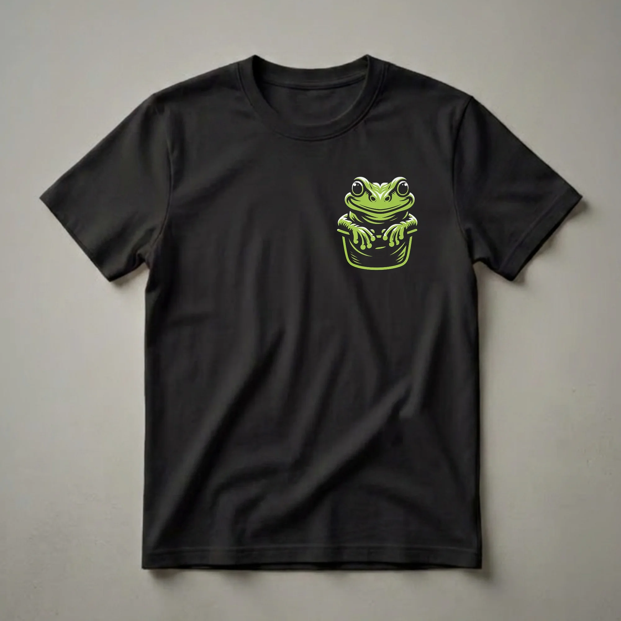 Reptile enthusiasts who appreciate the unique charm of amphibians will reach for this graphic tee. The design showcases a vibrant green frog, rendered in a bold, graphic art style, peeking out from what appears to be a pocket. Its large, expressive eyes and wide smile give it a friendly and approachable demeanor, making it an instant conversation starter. Frogs are known for their incredible ability to adapt to various environments, from lush rainforests to arid deserts, and their distinctive croaks are a familiar sound in many natural habitats. This shirt is a playful nod to these fascinating creatures. It makes a thoughtful gift for anyone who finds joy in the natural world, particularly those with a soft spot for frogs. Wear this t-shirt to casual outings, nature walks, or simply when you want to add a touch of whimsical charm to your everyday attire. It’s a staple in the collection for any frog admirer.