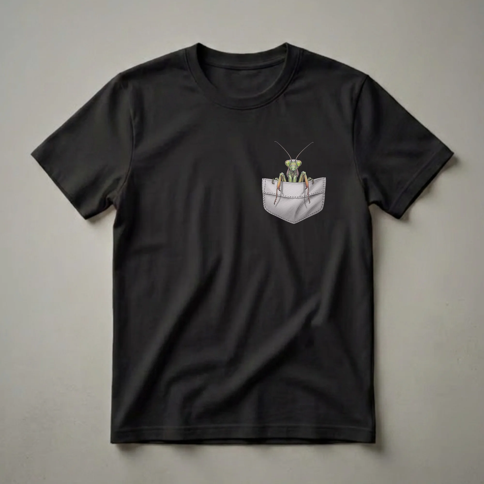 Hover to zoom · tap to expand Pocket Peeking Praying Mantis Graphic T-Shirt for Insect Lovers