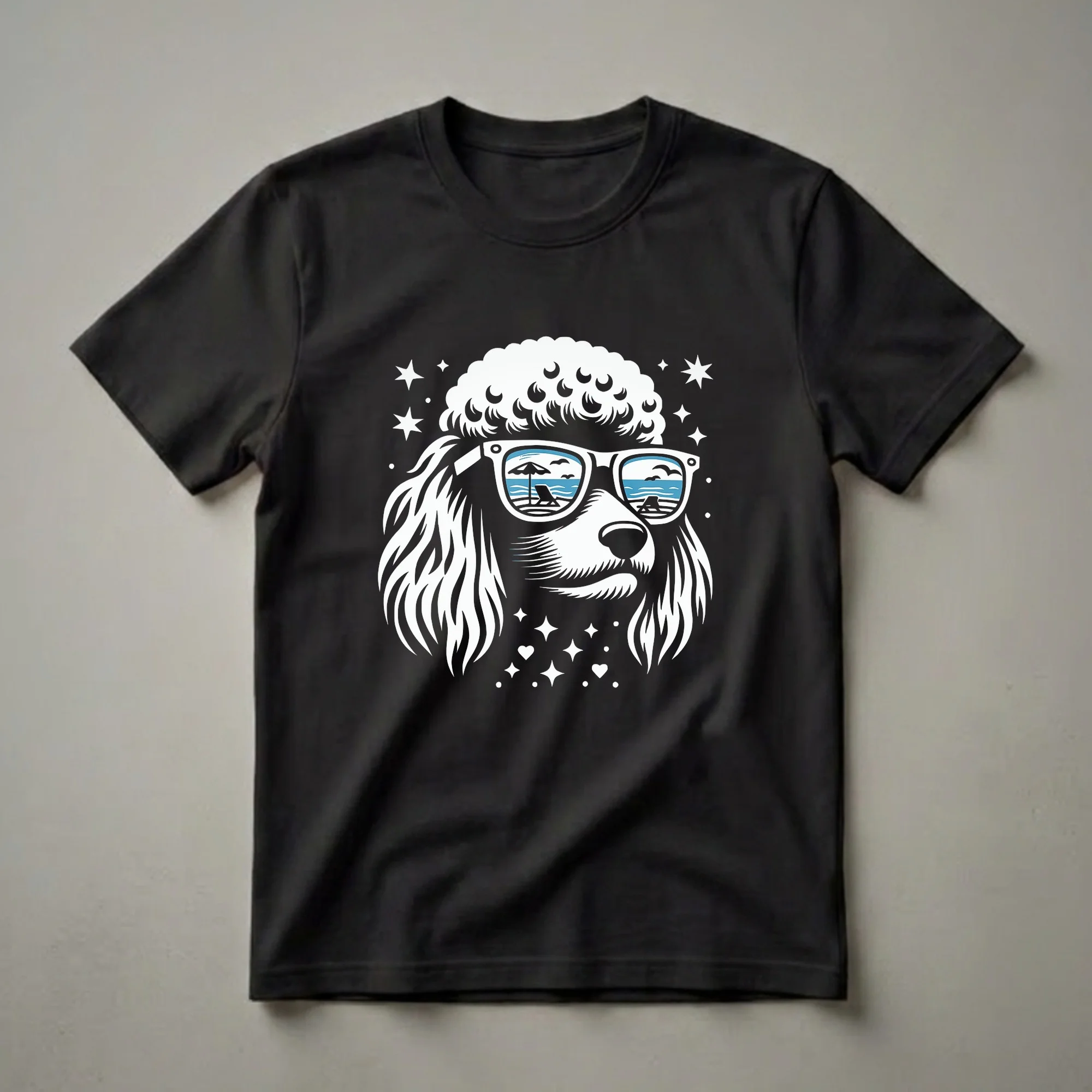Hover to zoom · tap to expand Poodle Wearing Sunglasses Beach Scene Graphic T-Shirt for Dog Lovers