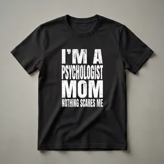 Psychologist moms possess a unique blend of professional expertise and maternal strength, navigating the complexities of human behavior while raising a family. This graphic tee celebrates that dual role, featuring bold white lettering on a black background that reads, "I'M A PSYCHOLOGIST MOM NOTHING SCARES ME." The distressed font adds a touch of resilience, mirroring the challenges and triumphs inherent in both professions. Psychologists dedicate their careers to understanding the human mind, offering support and guidance to individuals facing various life challenges. This shirt speaks to that deep understanding and the unwavering confidence it can foster. For a psychologist mom, the demands of her profession are often balanced with the equally demanding, yet rewarding, role of motherhood. This tee is a statement piece for any mom who is a psychologist, highlighting her capability to handle any situation with grace and intelligence. It makes a thoughtful gift for the psychologist mom who juggles demanding work and family life, offering a way for her to wear her pride. This shirt works well for casual outings, family gatherings, or even as a comfortable option during a busy day. It's a staple in the collection for any proud psychologist mom.