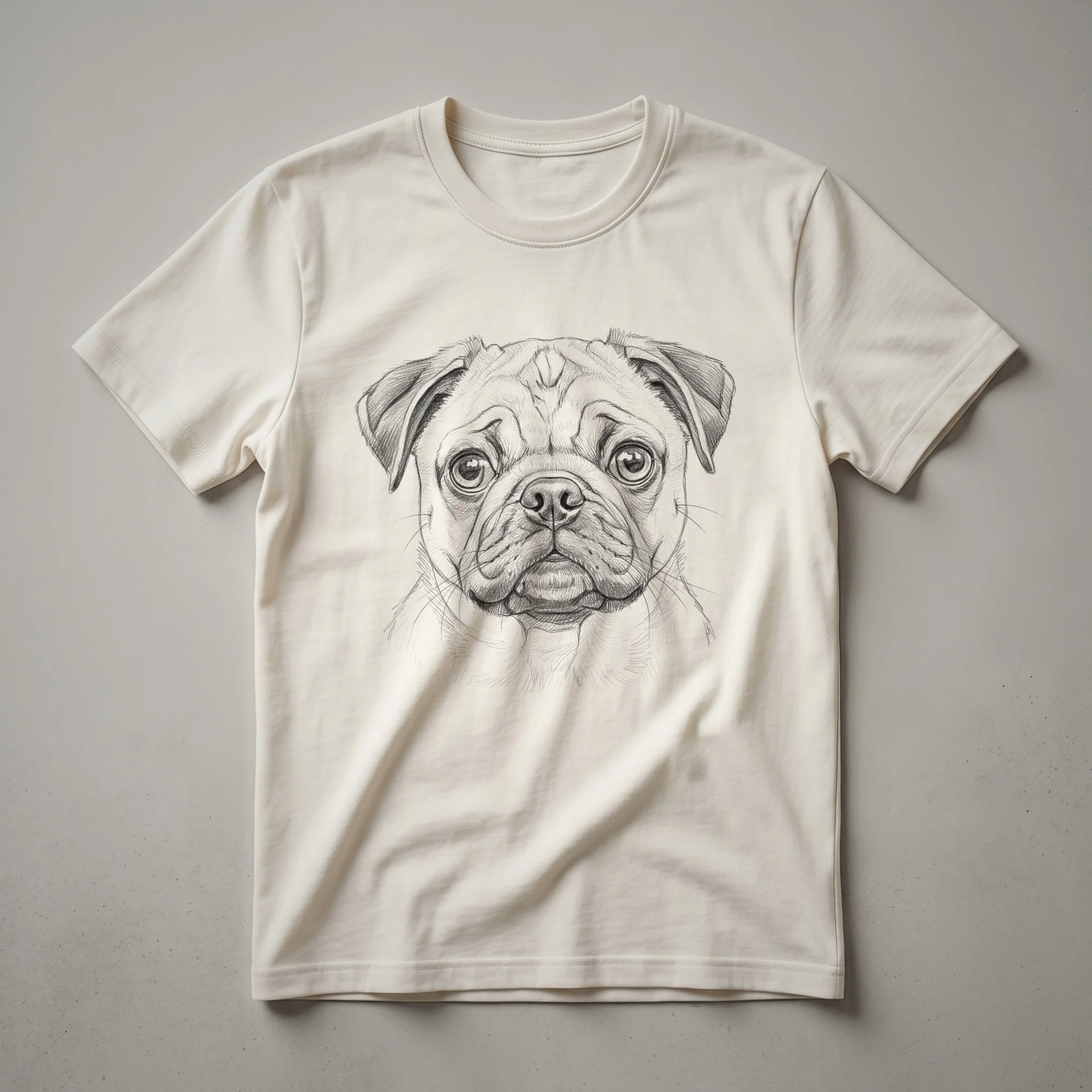 Showcase your love for the adorable wrinkles and soulful eyes of your canine companion with this chic pug line art sketch tee. This t-shirt features a striking line art sketch of a pug's face, capturing the breed's distinctive features with simple, elegant lines. Pugs, originating from China, are known for their playful nature and affectionate personalities, making them a cherished part of many families. This graphic tee is a subtle yet eye-catching way for any Pug mom or Pug dad to display their affection for their four-legged friend. It's a staple in the collection for those who appreciate minimalist art and canine companionship. This shirt works well for casual outings, dog park visits, or simply relaxing at home with your furry pal. It makes a thoughtful gift for the Pug enthusiast in your life who will reach for this tee often.