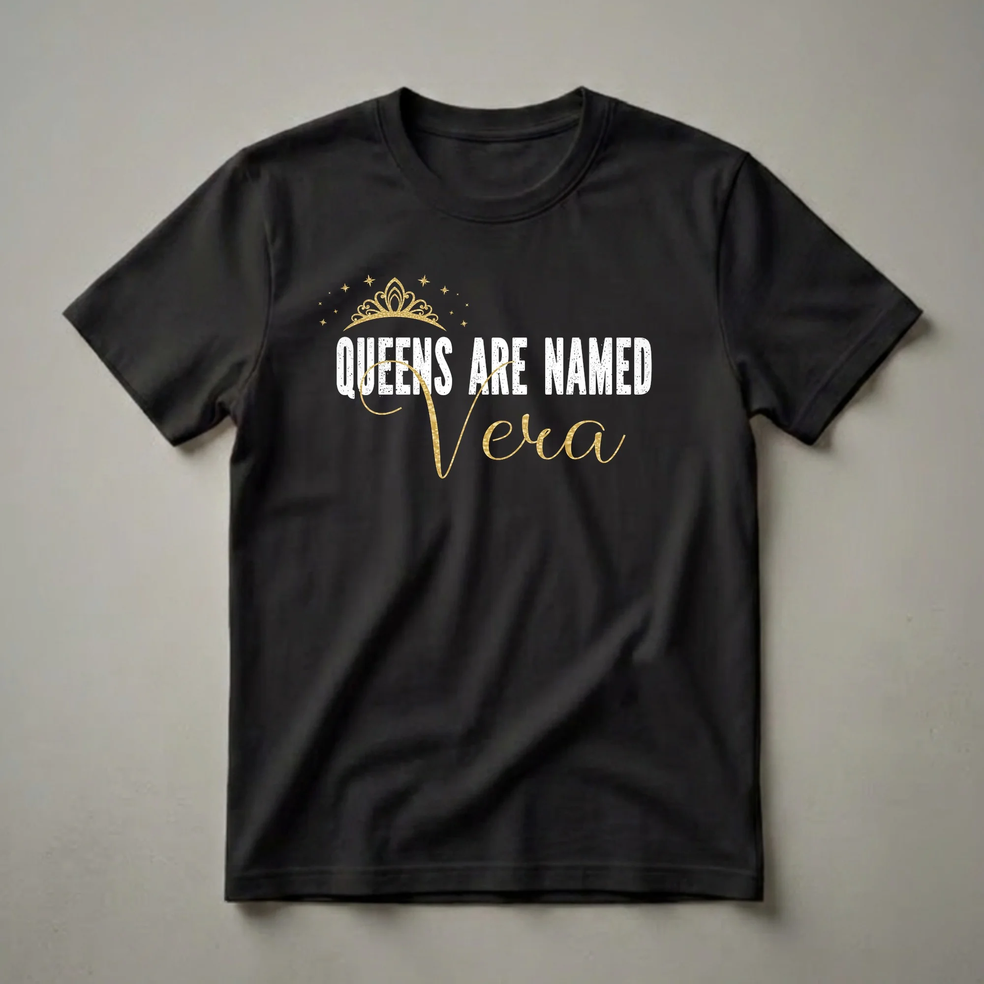 - Personalized 'Queens Are Named Vera' graphic tee for girls.