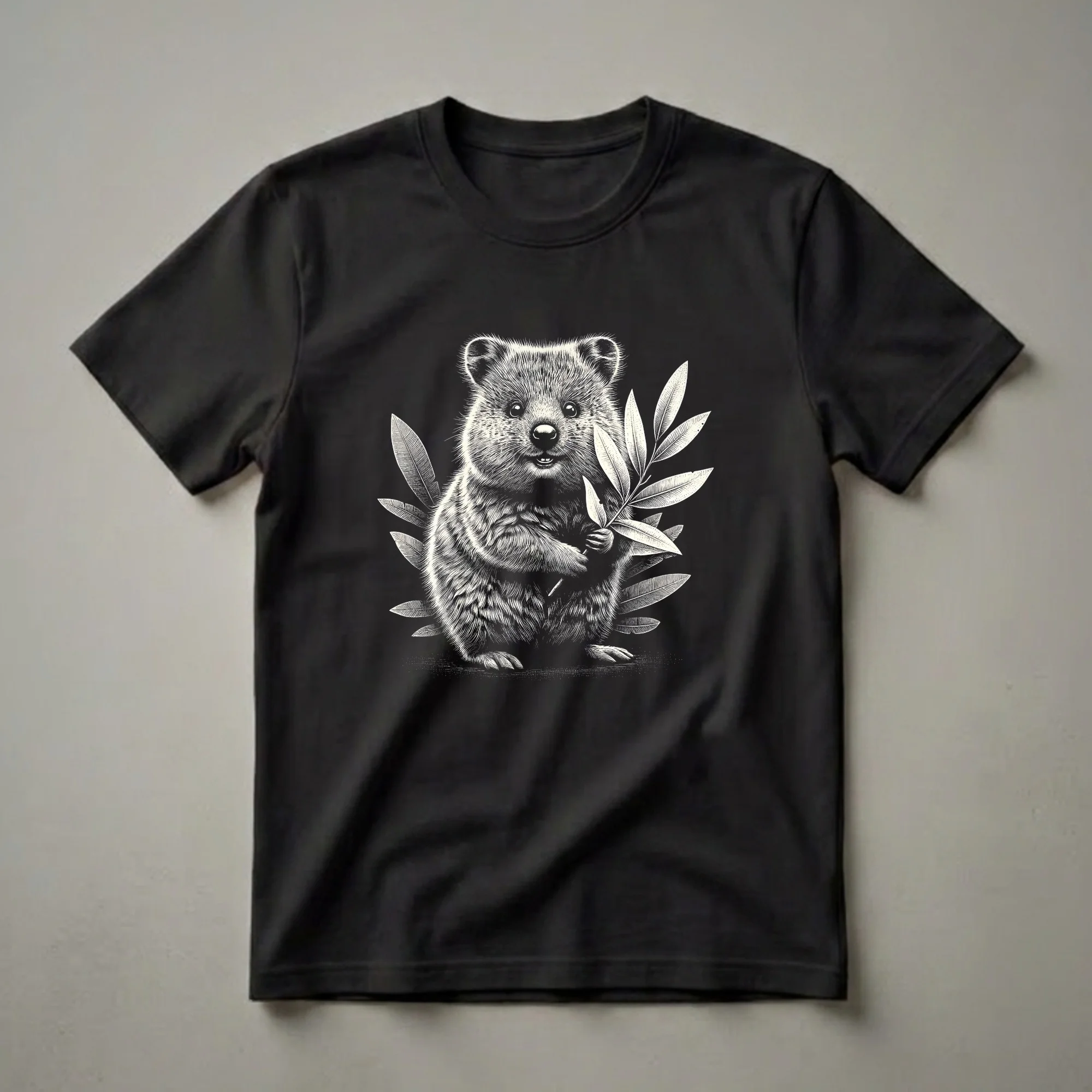 - Quokka graphic art t-shirt for wildlife enthusiasts.