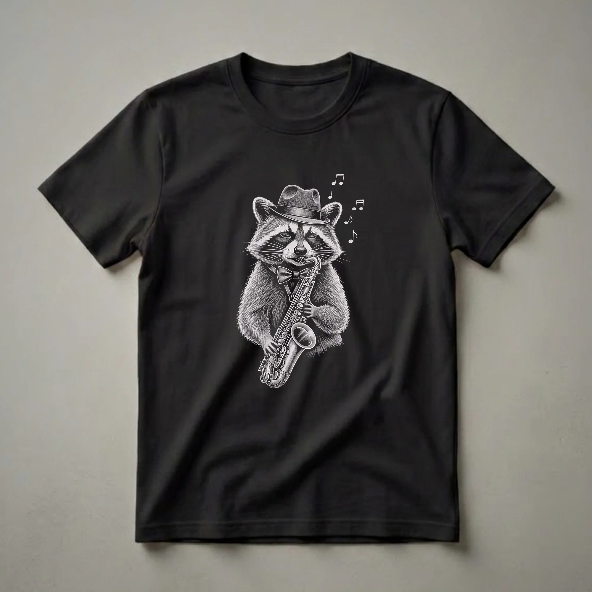 - A unique graphic tee for jazz musicians and raccoon admirers.