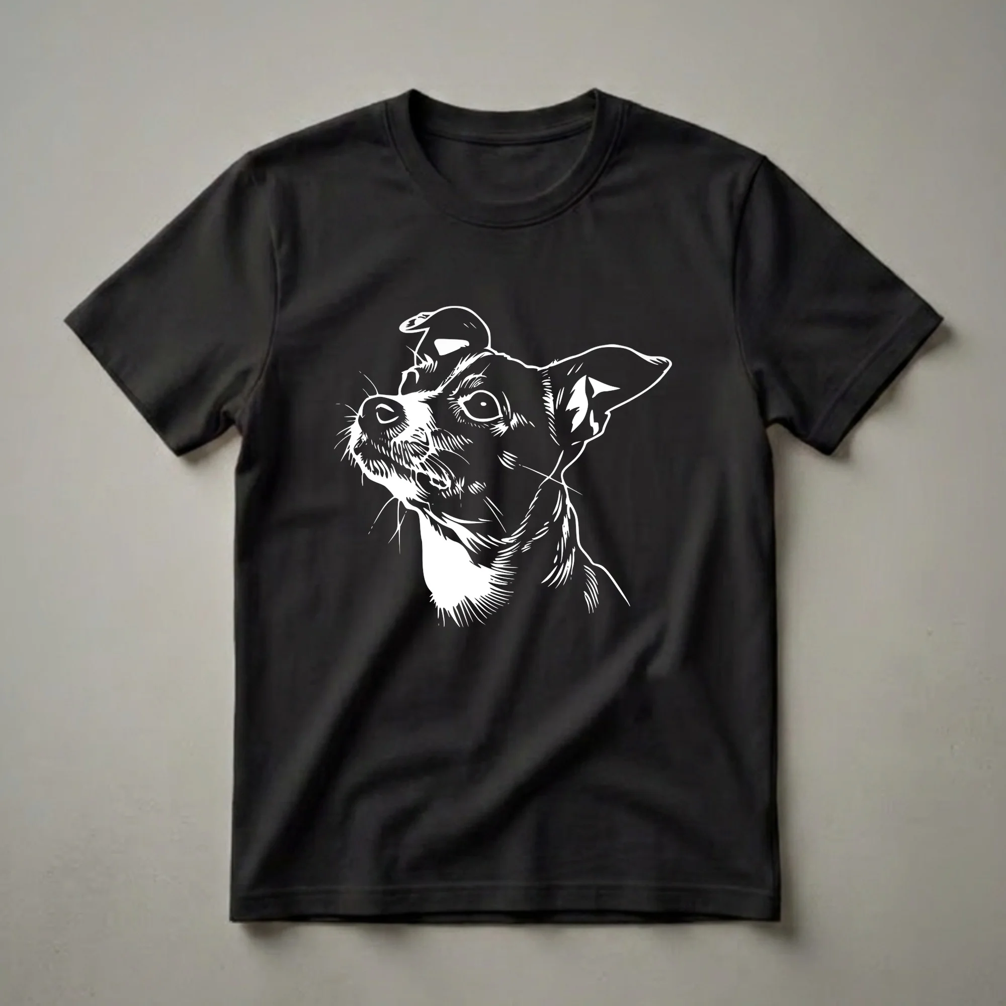 Rat Terrier owners know the breed's spirited personality and keen intelligence. This graphic t-shirt features a detailed white line art illustration of a Rat Terrier's face, capturing its alert expression and distinctive features. The design pops against the dark background, making it a standout piece for any dog enthusiast. Rat Terriers, originally bred for hunting vermin on farms, are known for their loyalty and playful nature. This shirt is a wonderful way for Rat Terrier moms and dads to express their affection for their furry family members. It makes a thoughtful gift for birthdays, holidays, or just because. Wear this tee to your next dog park visit or casual outing and connect with fellow dog lovers. This shirt is a staple for anyone who cherishes their Rat Terrier companion.