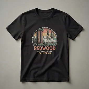 - Retro badge graphic tee for Redwood National Park visitors and nature lovers