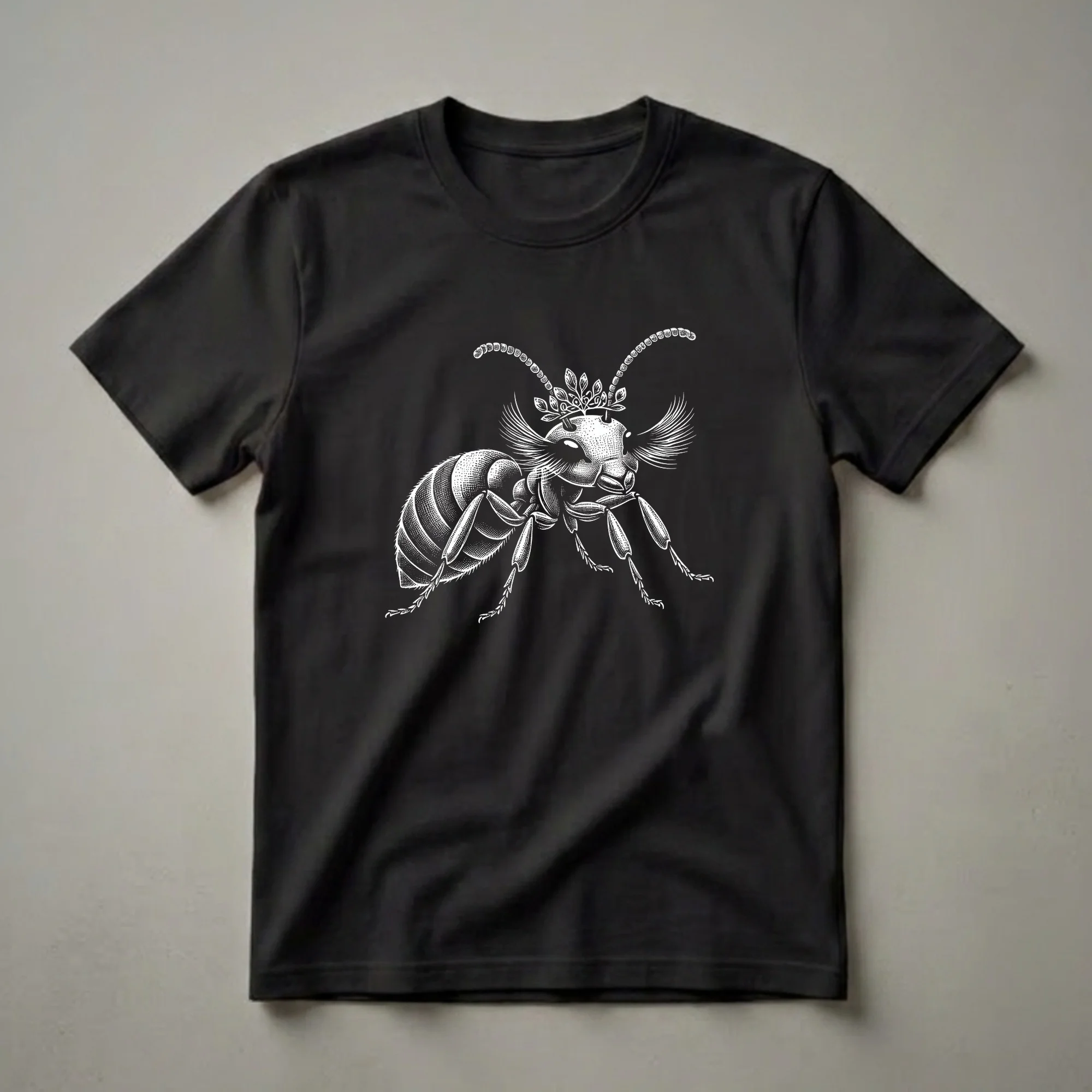 Nature lovers and admirers of intricate insect art will appreciate this unique t-shirt. The design features a detailed, black and white illustration of an ant, depicted with a regal air, complete with an ornate crown and leafy headpiece. This striking graphic tee captures the fascinating complexity of ants, creatures known for their incredible social structures and tireless work ethic. Ants are vital to ecosystems, playing a crucial role in soil aeration and seed dispersal, making them fascinating subjects for any wildlife enthusiast. This shirt is a thoughtful gift for women and girls who are drawn to the natural world and enjoy unique, artistic apparel. It's a conversation starter, great to wear on hikes, to nature talks, or simply as a statement piece in your everyday wardrobe. Embrace your fascination with the miniature world and wear this eye-catching ant design with pride. Many ant species are found across diverse habitats worldwide.