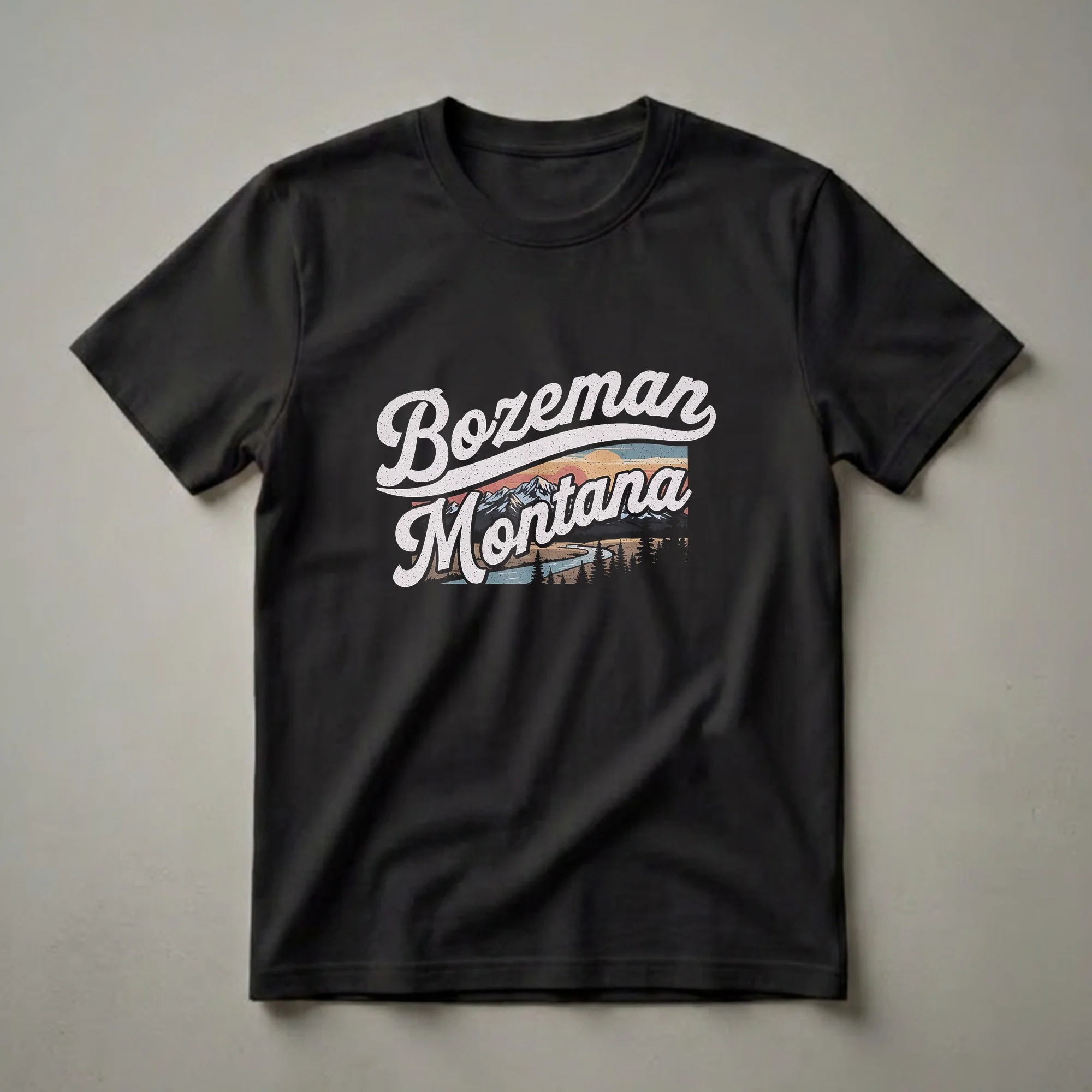 Hover to zoom · tap to expand Retro Bozeman Montana Mountain River Sunset Graphic T-Shirt