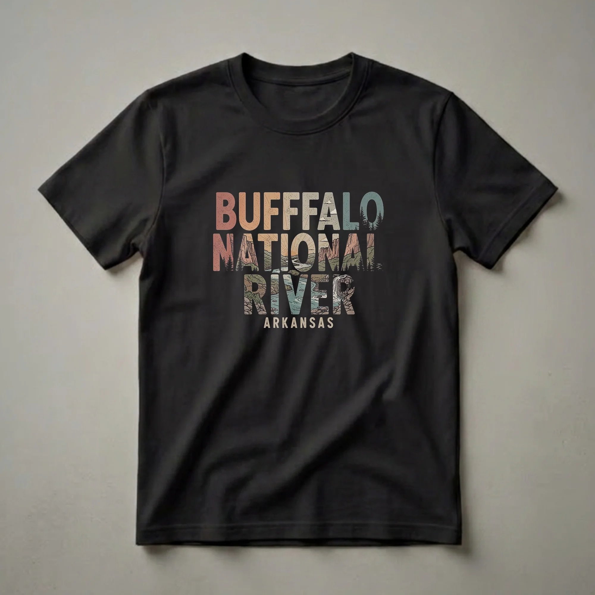 - Retro graphic tee for fans of the Buffalo National River in Arkansas.