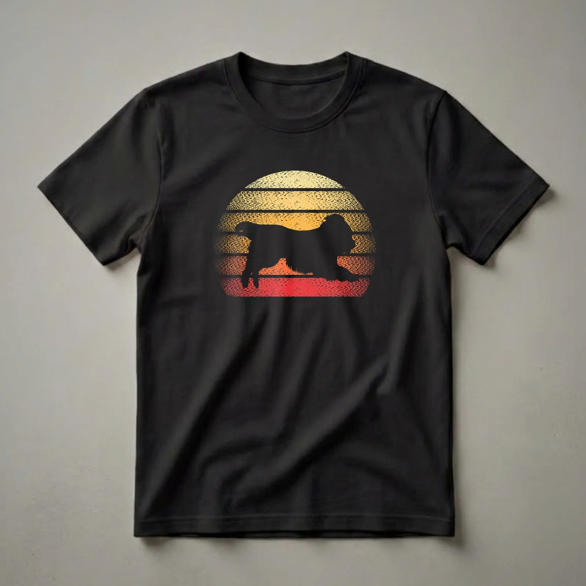Spaniel enthusiasts will adore this graphic tee featuring a Cavalier King Charles Spaniel silhouette against a nostalgic, multi-hued retro sunset. This graphic tee captures that spirit with a striking silhouette of the breed set against a vibrant, retro-style sunset. The design features horizontal bands of color, yellow, orange, and red, with a distressed texture that evokes a vintage feel. The Cavalier King Charles Spaniel, known for its gentle disposition and expressive eyes, is depicted in profile, its long, flowing ears a key characteristic. This t-shirt is a fantastic way for any enthusiast to wear their passion. It makes a thoughtful gift for a birthday or any occasion for the Cavalier King Charles Spaniel mom or dad in your life. Wear this shirt to your next dog park visit or casual outing to spark conversations with fellow breed admirers.