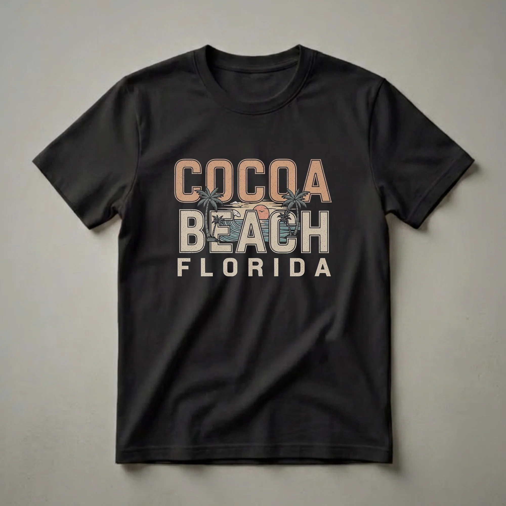 - Retro graphic tee celebrating Cocoa Beach, Florida, and its iconic coastline.