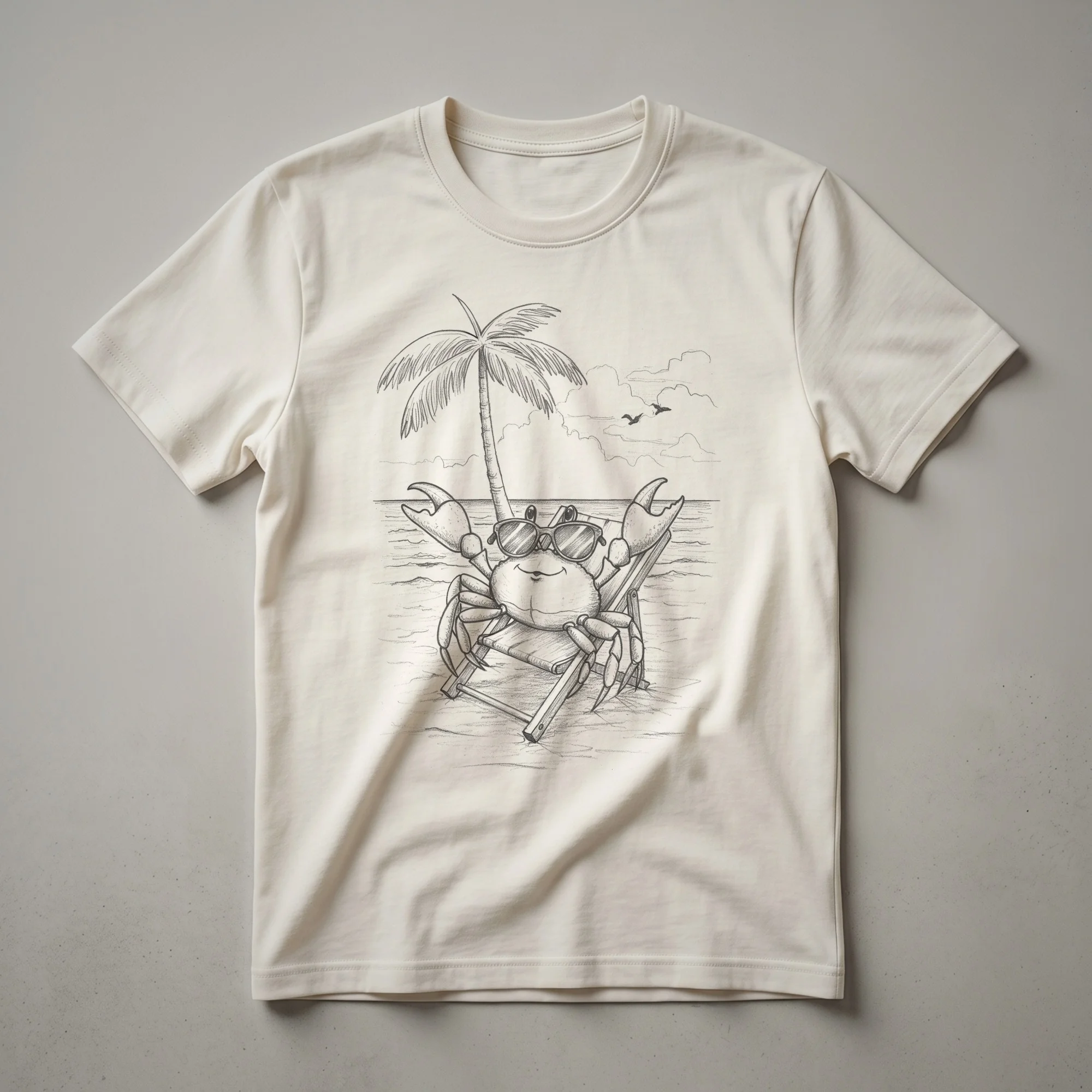 Beach lovers will reach for this eye-catching graphic tee featuring a whimsical drawing of a crab enjoying a day by the sea. The crab, depicted with a cheerful expression, sports a pair of cool sunglasses and is comfortably seated on a classic beach chair. Behind the crab, a stylized beach scene unfolds, complete with a sandy shore and a hint of the ocean. This t-shirt captures the essence of a relaxed vacation vibe, making it a staple for anyone who dreams of sandy shores and ocean breezes. Crabs, belonging to the order Decapoda, are fascinating crustaceans found in all the world's oceans, often inhabiting sandy bottoms or rocky crevices. This shirt is a thoughtful gift for women who love coastal living or men who enjoy a laid-back summer aesthetic. Wear this shirt to your next beach outing, a casual brunch, or simply when you want to bring a touch of seaside charm to your day. It's a fun way to express your appreciation for marine life and the simple joys of a day at the beach.
