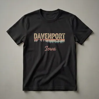 - Celebrate Davenport, Iowa's unique charm with this retro sunset graphic tee.