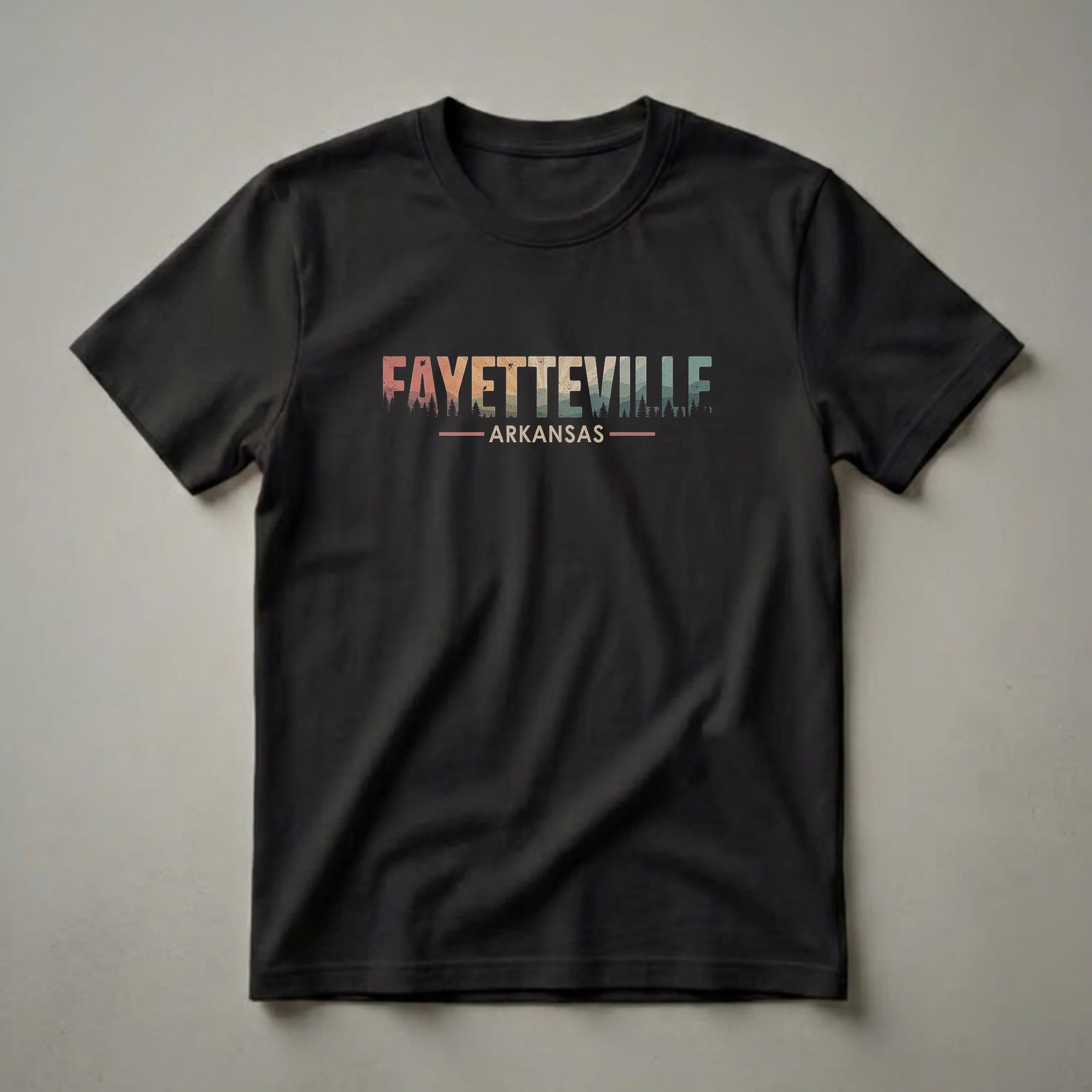 Hover to zoom · tap to expand Retro Fayetteville Arkansas Trees and Mountains Graphic T-Shirt