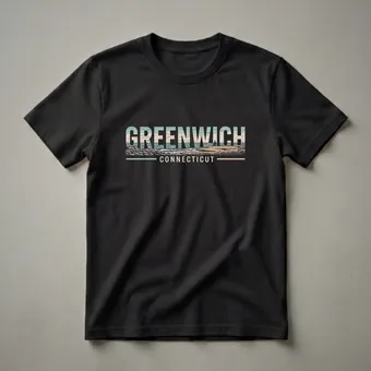Greenwich, Connecticut residents and visitors who appreciate the charm of the Long Island Sound will reach for this unique graphic tee. The design captures a retro, artistic interpretation of the Greenwich coastline, featuring the town's name in bold, distressed lettering across the top. Below the name, a stylized beach scene unfolds with textured rocks, gentle waves, and a solitary sailboat gliding across the water. Tall grasses line the shore, adding to the natural aesthetic. The word "CONNECTICUT" is prominently displayed beneath the scenic graphic, grounding the design in its specific location. This t-shirt is a thoughtful gift for anyone who has fond memories of Greenwich, whether they grew up there, visit often, or simply admire its coastal beauty. It's a great way to wear your hometown pride or a cherished travel memory. This shirt works well for casual outings, beach days, or as a conversation starter among fellow Connecticut enthusiasts. It's a staple in the collection for those who love the New England coast.