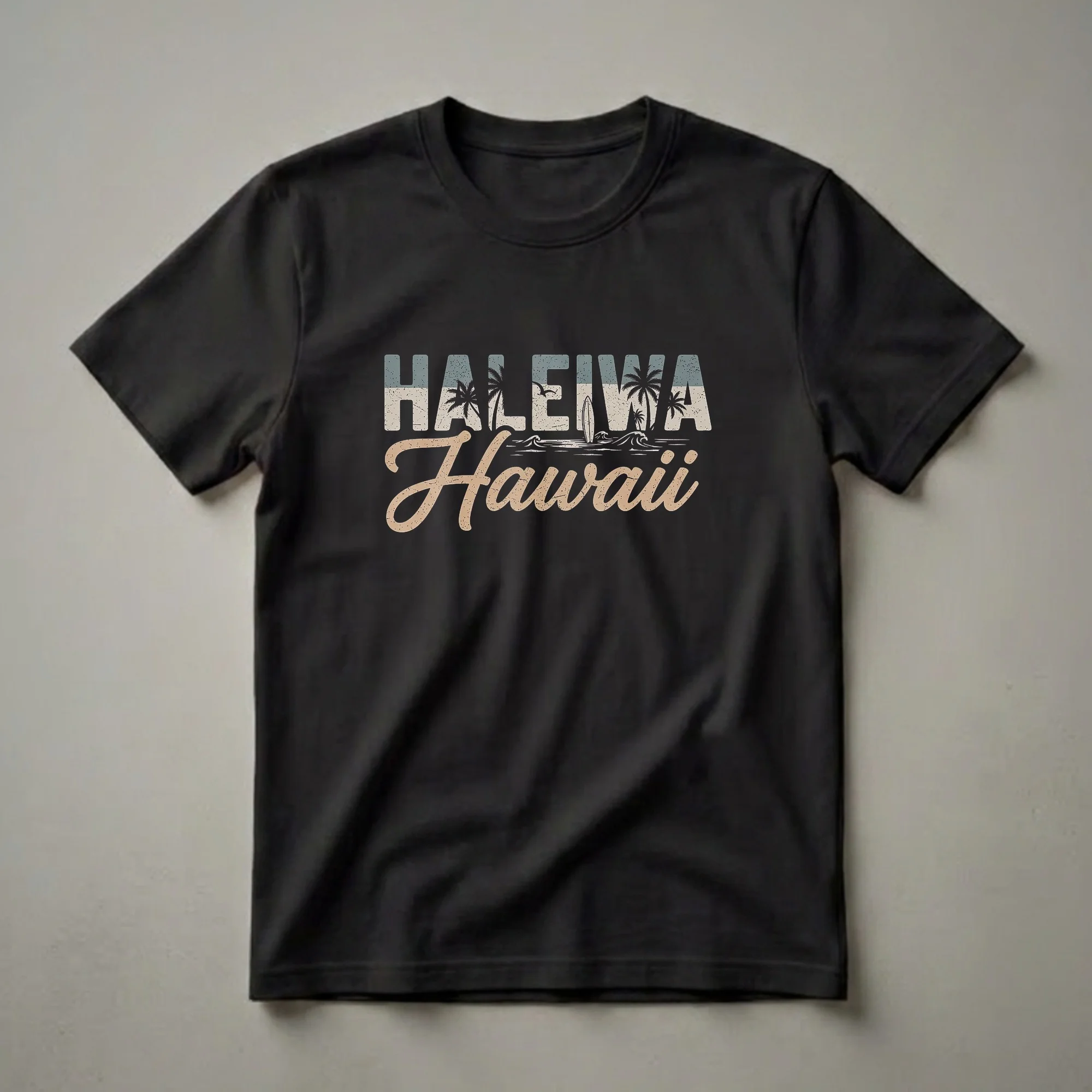 - Retro Haleiwa Hawaii graphic tee for island lovers.