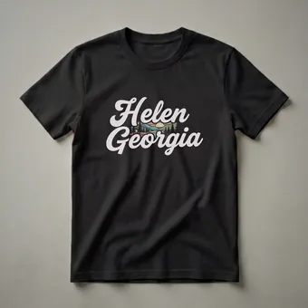 - Retro graphic t-shirt celebrating the unique charm of Helen, Georgia.
