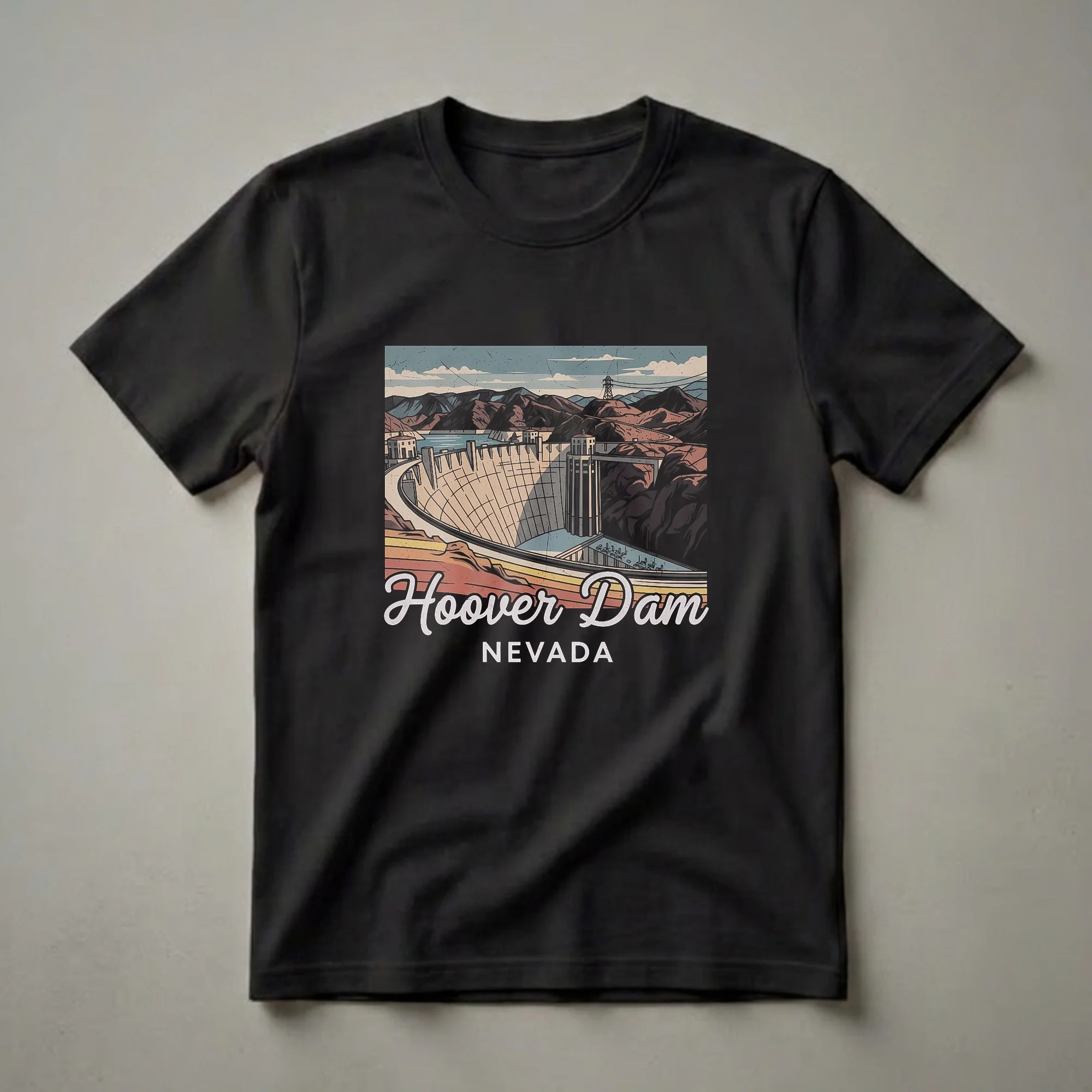 - Retro Hoover Dam graphic t-shirt for travelers.