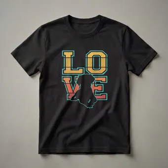 Brittany Spaniel owners know the joy these energetic and affectionate dogs bring into their lives. This retro-inspired graphic tee captures that sentiment with a bold 'LOVE' design. The word 'LOVE' is presented in a distressed, vintage font with horizontal stripes in shades of yellow, orange, and red, outlined in teal. Centered within the 'O' is a striking black silhouette of a Brittany Spaniel, showcasing its distinctive feathered tail and alert ears. Brittany Spaniels, originating from Brittany, France, are known for their intelligence, trainability, and boundless enthusiasm, making them wonderful family pets. This t-shirt is a thoughtful gift for any Brittany Spaniel mom or dad, or for someone celebrating a birthday who adores their four-legged friend. Wear this shirt to your next dog park visit or casual outing to proudly display your devotion to your beloved Brittany Spaniel.