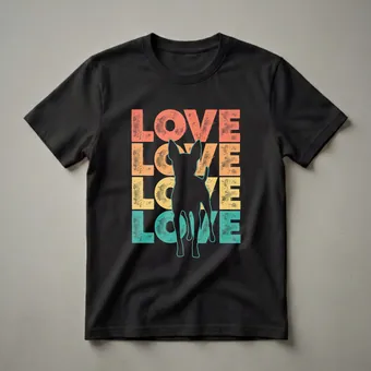 Celebrate your beloved Toy Fox Terrier with this vibrant retro graphic tee featuring a stacked 'LOVE' design. This retro-inspired graphic tee features a striking silhouette of a Toy Fox Terrier, a breed known for its intelligence and playful nature. The word 'LOVE' is stacked four times in a vintage color palette of coral, orange, yellow, and teal, creating an eye-catching design that celebrates the bond between humans and their canine friends. The Toy Fox Terrier, a descendant of Smooth Fox Terriers, is a lively and affectionate breed that thrives on companionship. This shirt is a thoughtful gift for any woman who cherishes her Toy Fox Terrier, whether she's a dedicated dog mom or simply appreciates unique dog-themed apparel. Wear this comfortable tee to your next dog park visit or casual outing, and let your love for your furry friend shine. It's a go-to tee for any devoted Toy Fox Terrier enthusiast.