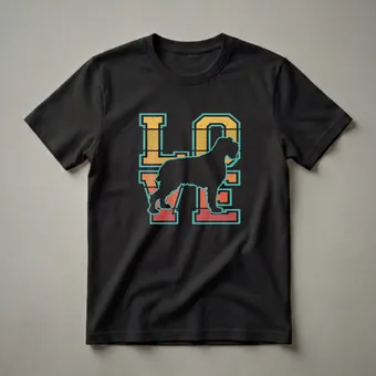 - Wirehaired Pointing Griffon silhouette artfully incorporated into a retro 'LOVE' design.