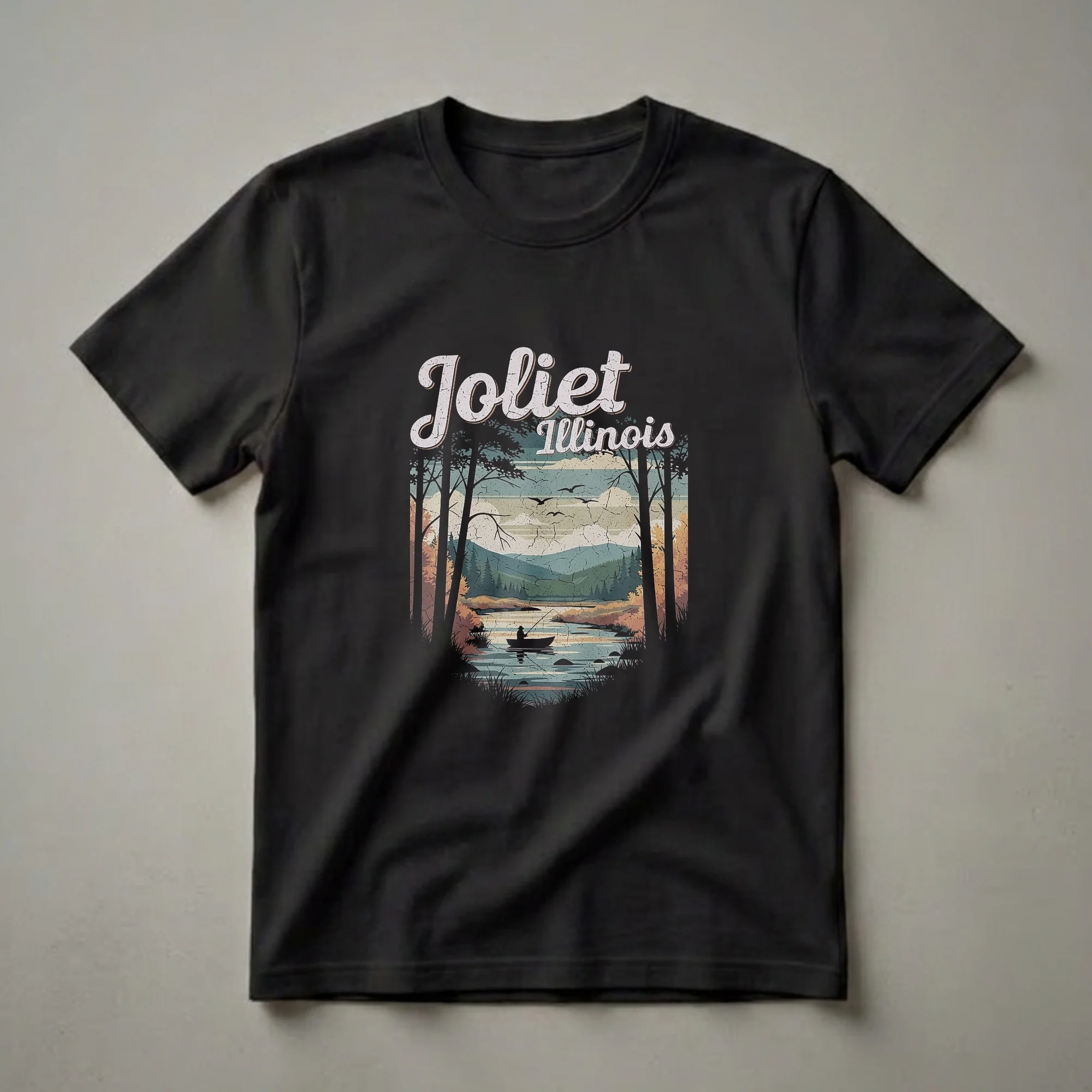 Hover to zoom · tap to expand Retro Joliet Illinois Fishing Landscape Graphic T-Shirt