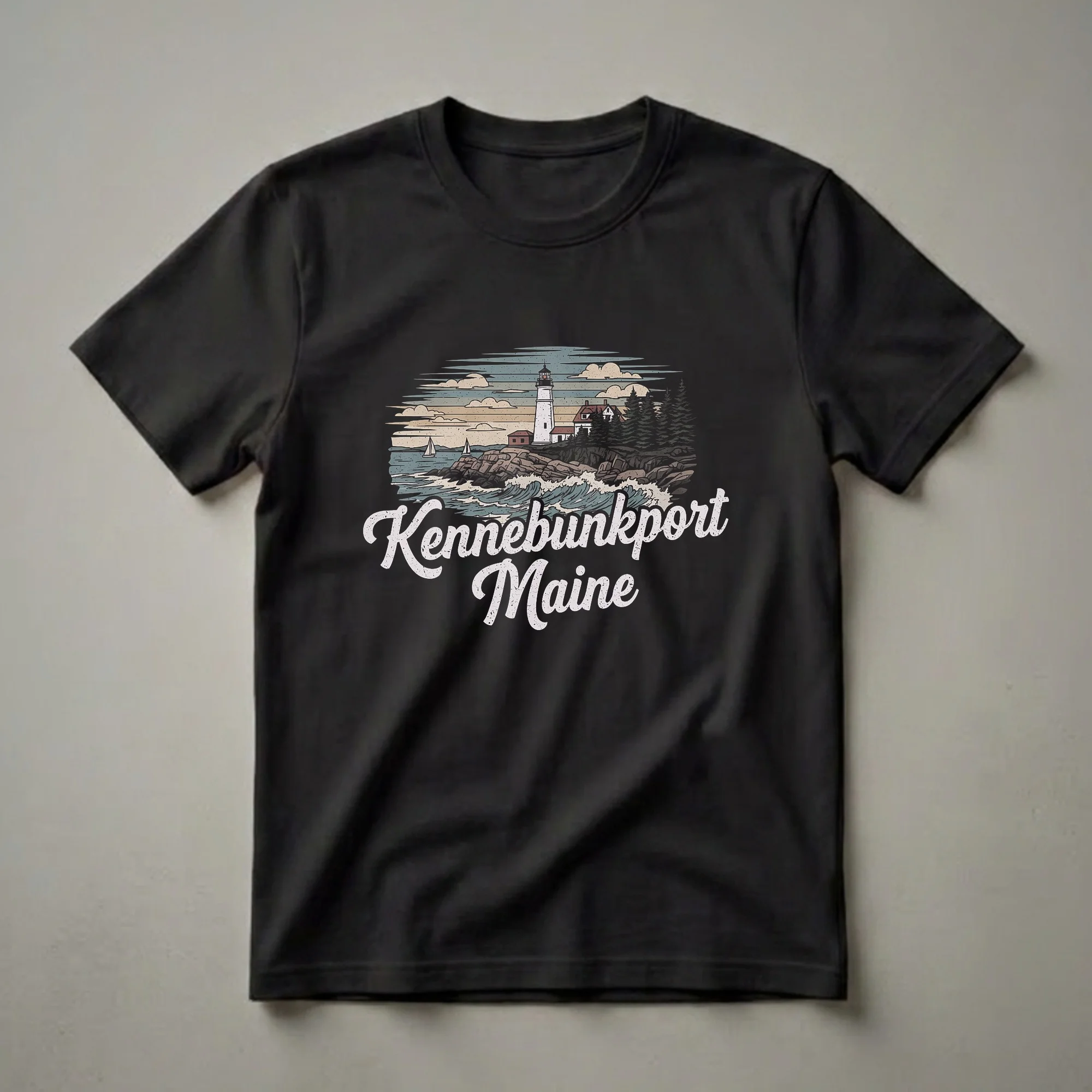 - Retro Kennebunkport Maine lighthouse graphic tee for coastal town lovers.