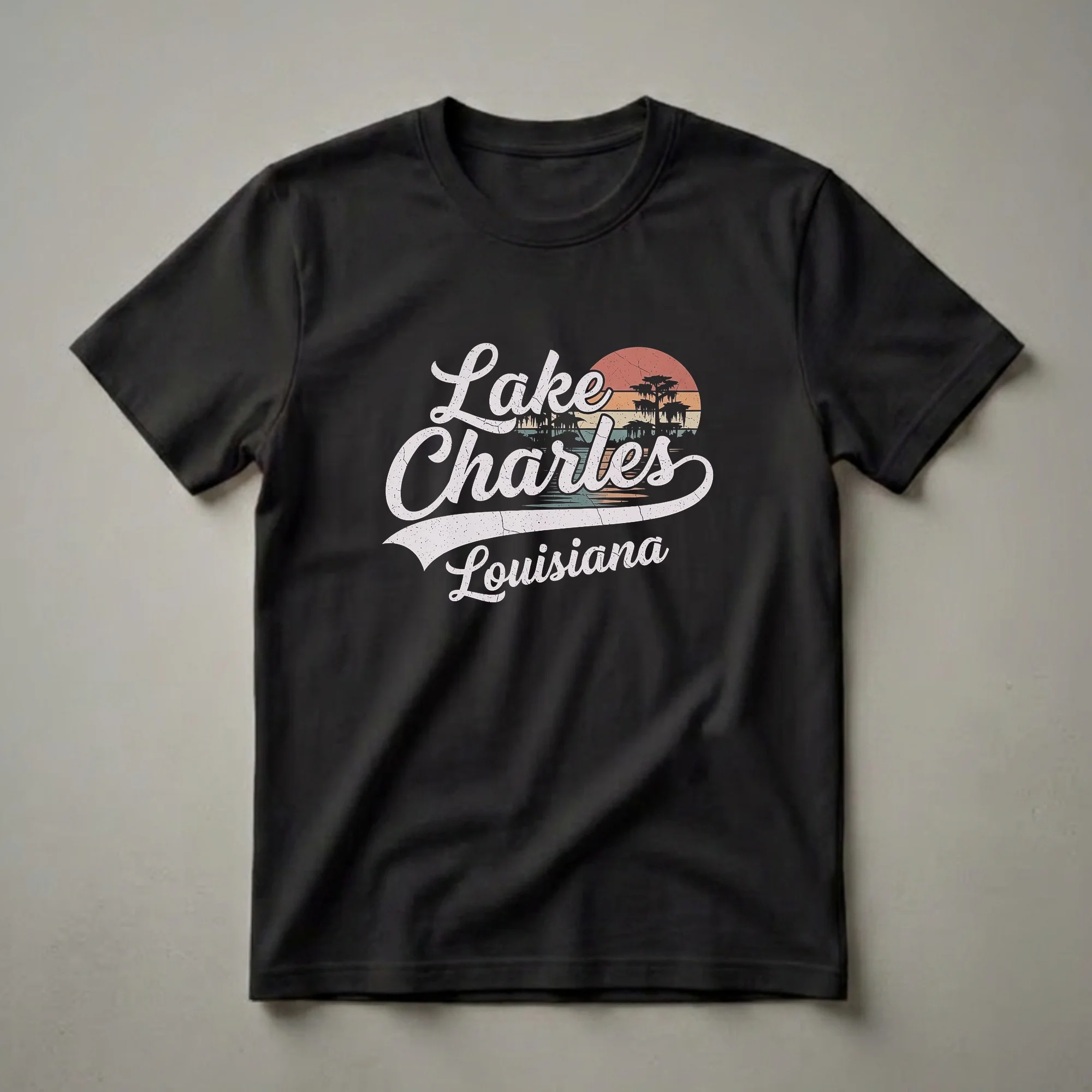 - Retro graphic t-shirt for Lake Charles, Louisiana residents.